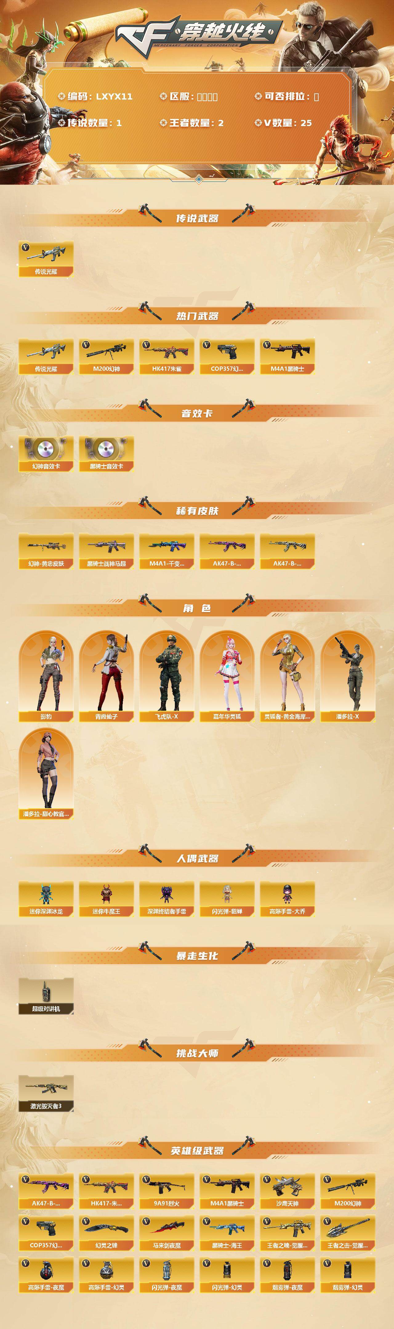 【LXYX11】24V/84级/将帅/1传说/2王者/1英雄/传说光耀/HK417-朱雀/M200-幻神/M4A1-黑骑士/COP 357-幻灵/M200-幻神音效卡/M4A1-黑骑士音效卡/M200-幻神-黄忠/M4A1-千变-孔明皮肤/黑骑士-战神马超/AK47-B-常胜将军-曹操/AK47-B-常胜将军-刘备/影豹/飞虎队-X/嘉年华灵狐/灵狐者-黄金海岸/潘多拉-X/潘多拉-甜心教官/青霞仙子/迷你深渊冰龙/迷你牛魔王/深渊终结者手雷/闪光弹-貂蝉/高爆手雷-大乔/超级对讲机/激光毁灭者