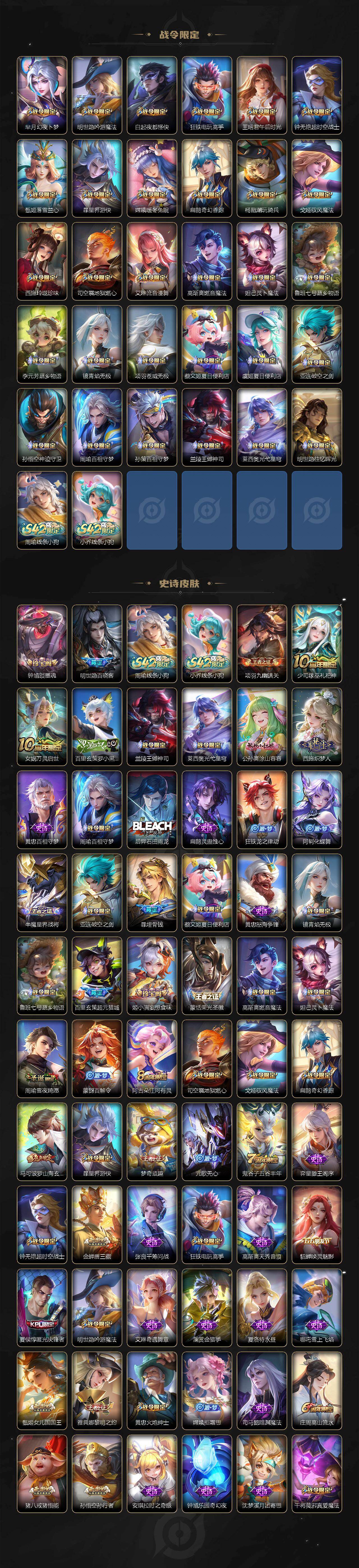 安卓Q-V10-最强王者段位-128英雄-490皮肤-7典藏皮肤-3无双-2珍品传说-53传说-149史诗