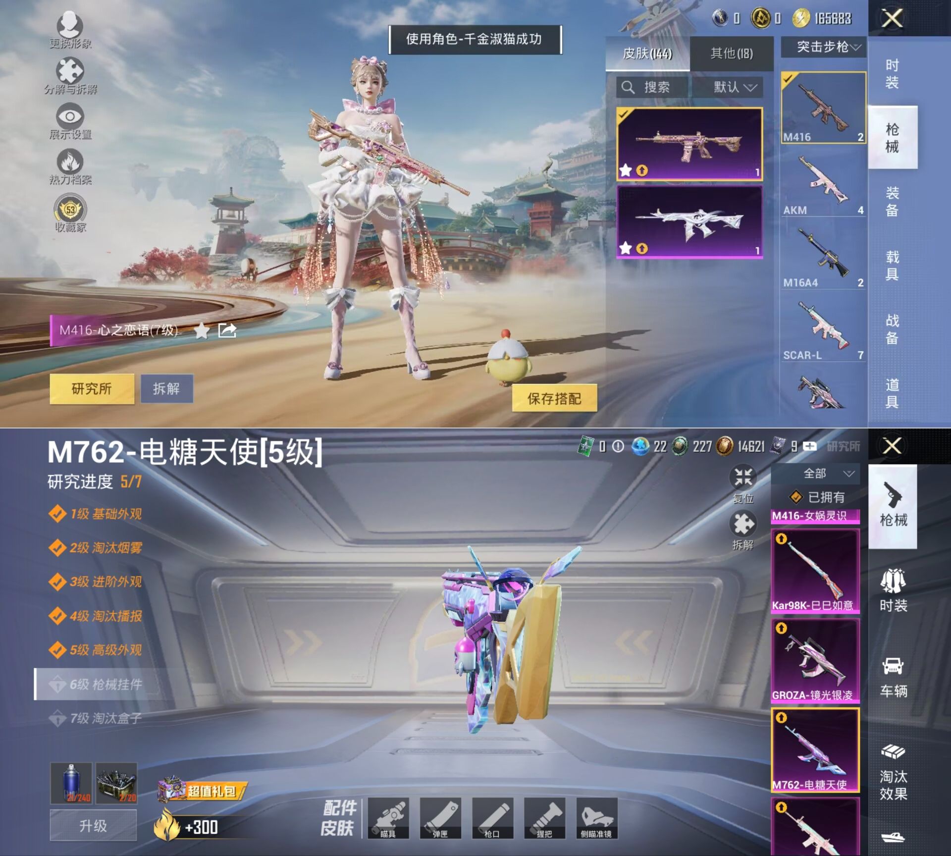 可二次【3粉装 8特效枪 M416-女娲灵识[3级] 满级心之恋语】安卓手Q-3粉装-8特效枪-88套装-144枪皮-11王牌印记-荣耀皇冠Ⅴ-42038热力值【3粉装】萌物绒绒 角色-千金淑猫 角色-虎痴许褚【8特效枪】M416-女娲灵识[3级] M416-心之恋语[7级] SCAR-L-锦绣绵绵[5级] Kar98K-巳巳如意[5级] M762-电糖天使[5级] DP-28-豹影疾电[5级]