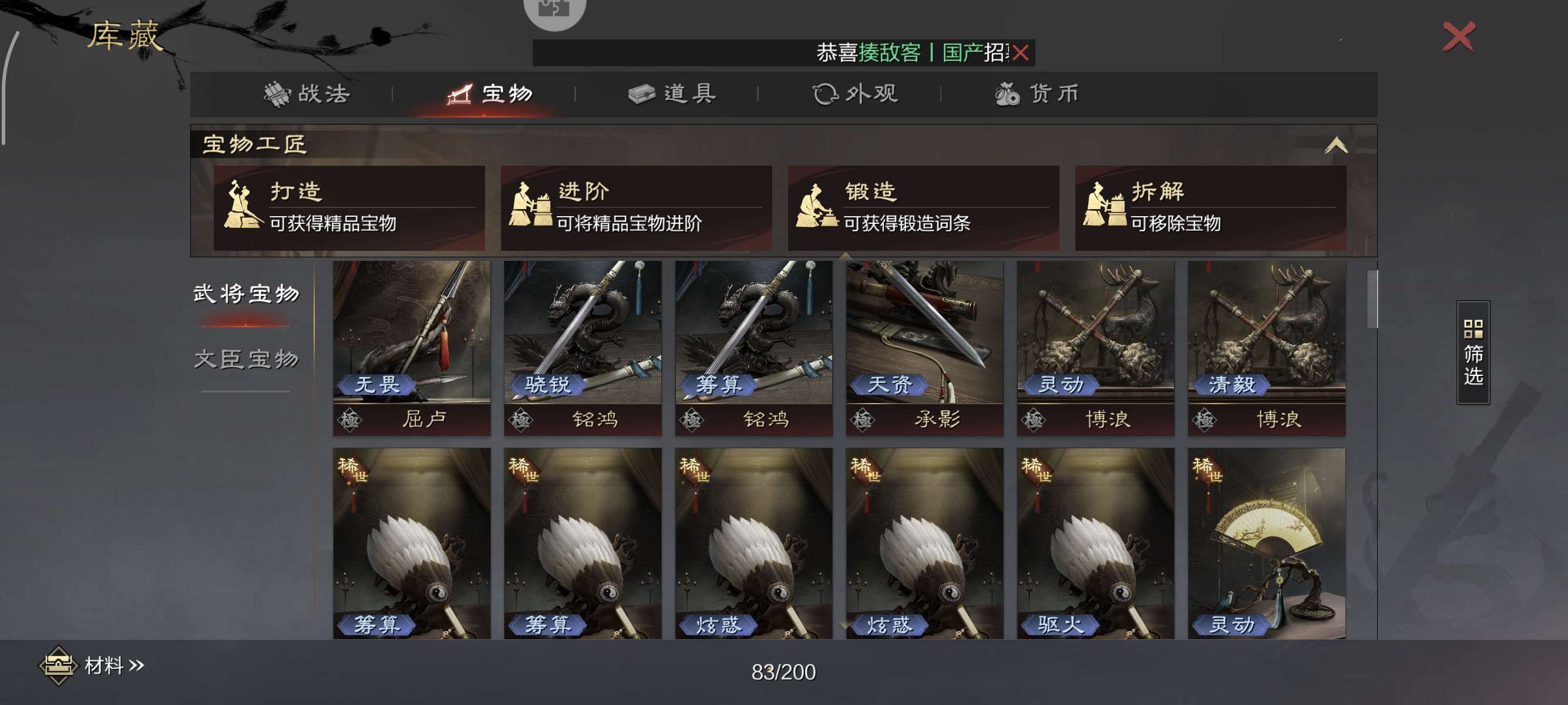武将多,战法全,配套宝物都有