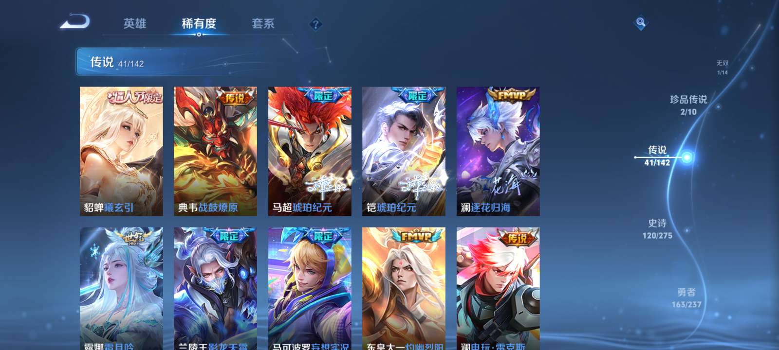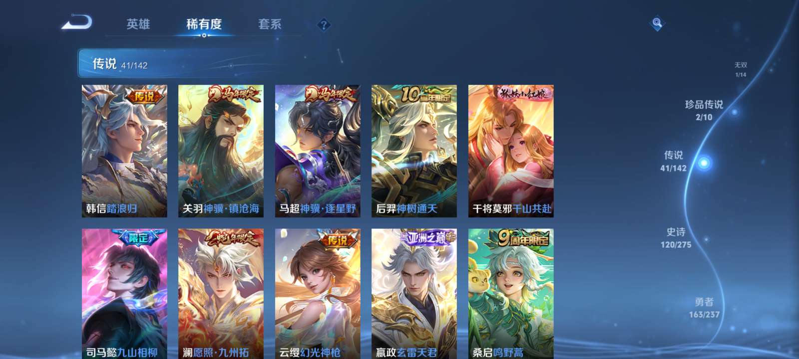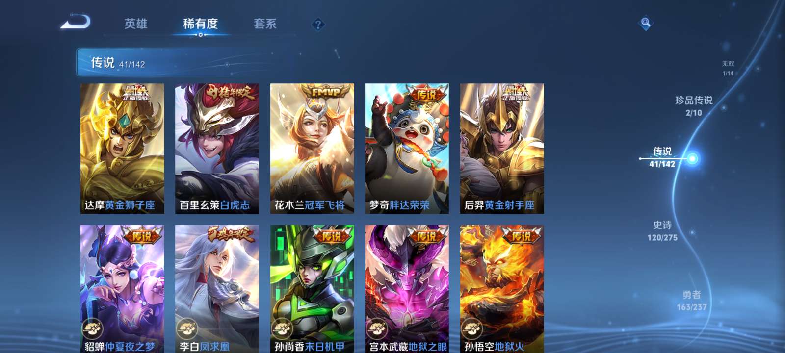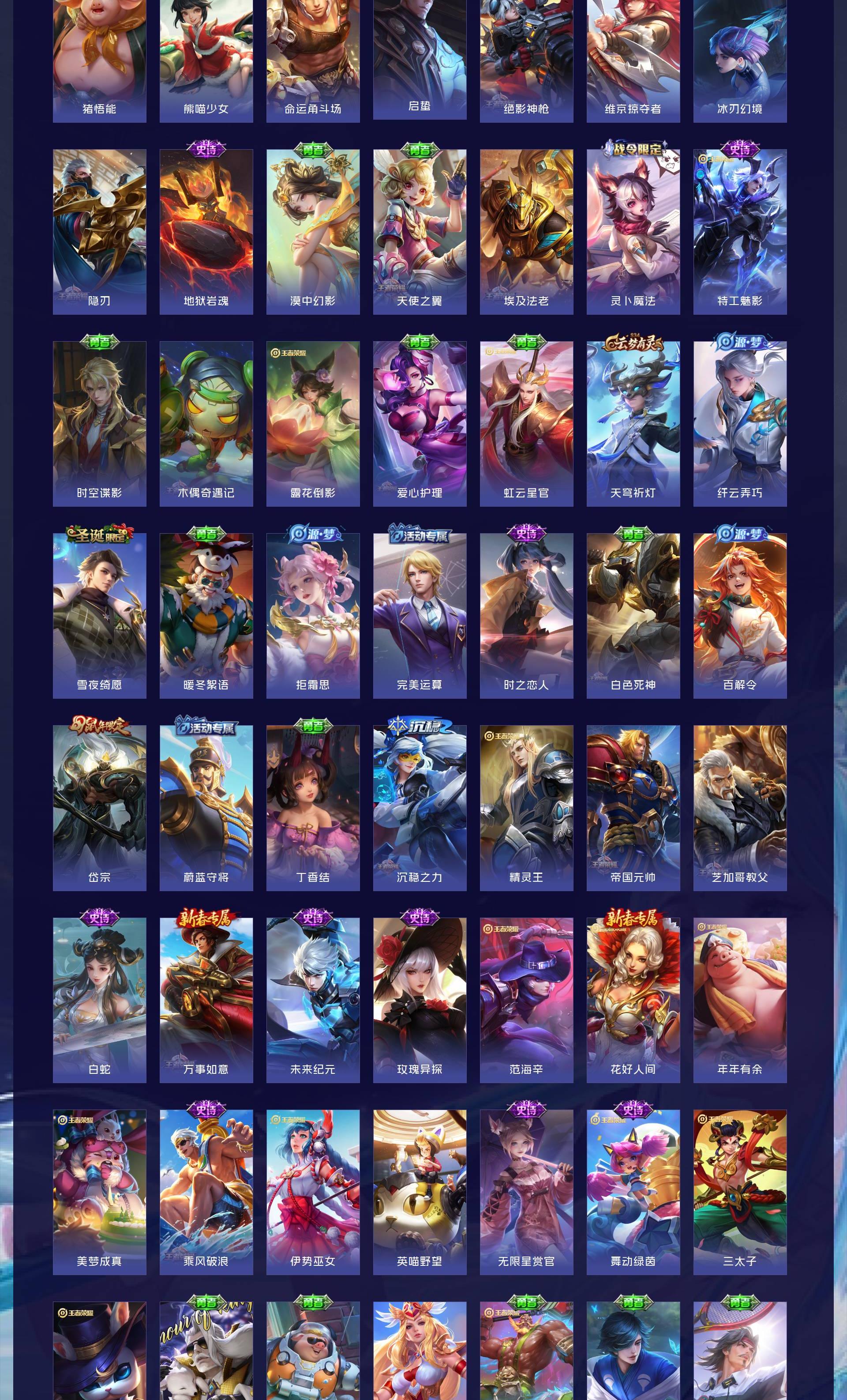 V9 皮肤403 英雄128 最强王者 荣耀典藏2 无双皮肤1 珍品传说2 传说42 其他皮肤362