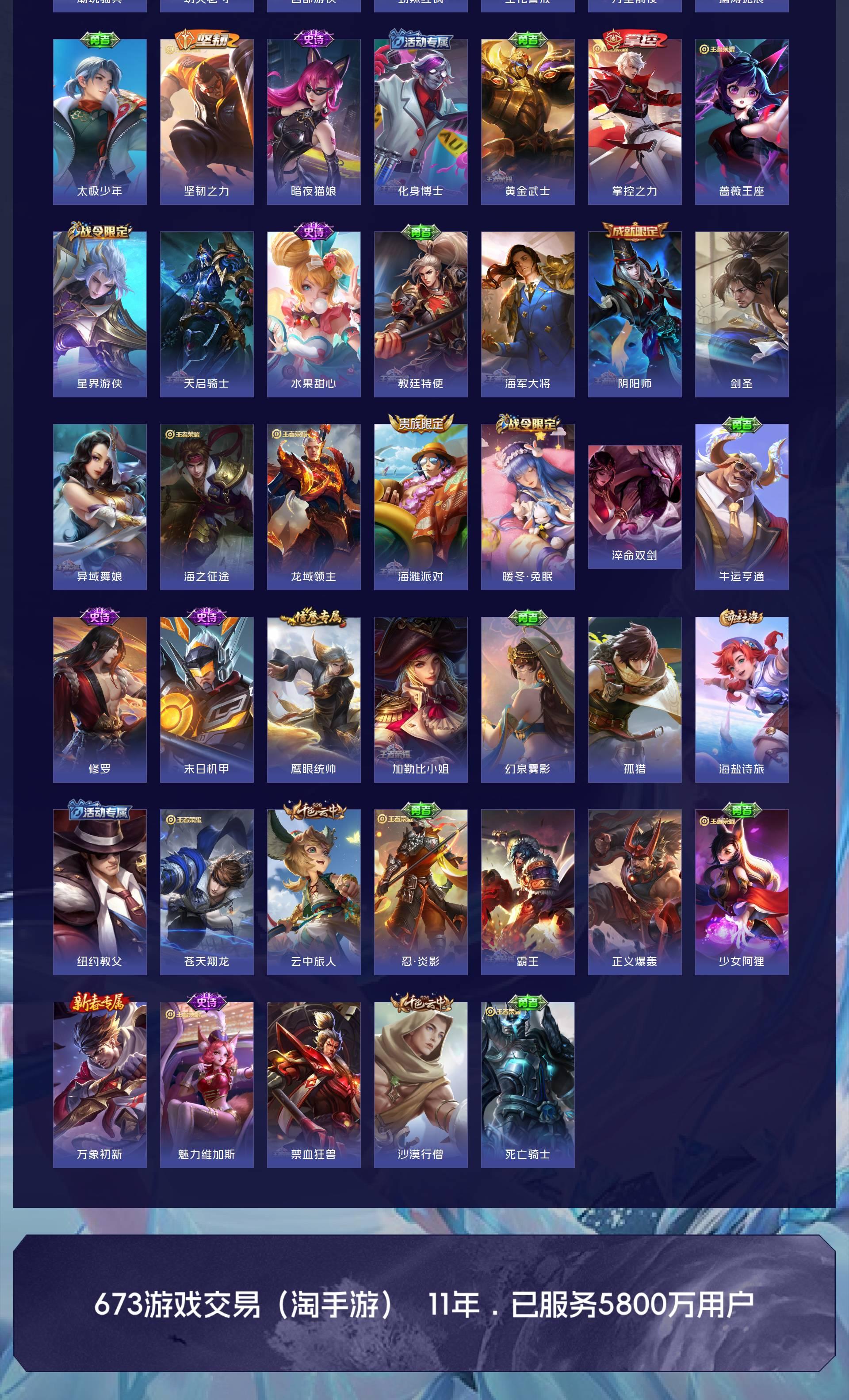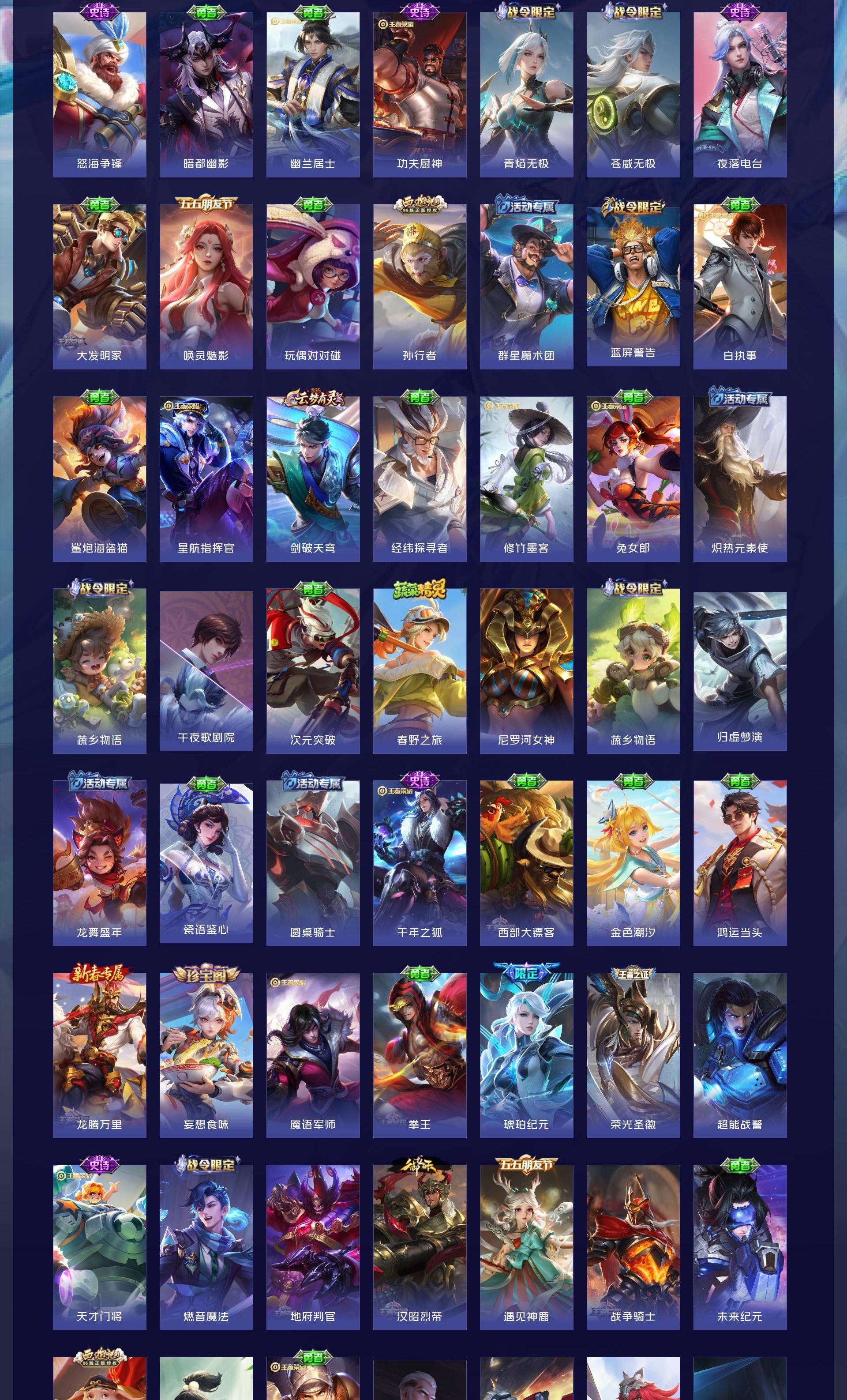 马超,蓝,达摩全皮多英雄全皮有几个就只差一些限定皮就全皮了或者可以拿和平精英号来换。