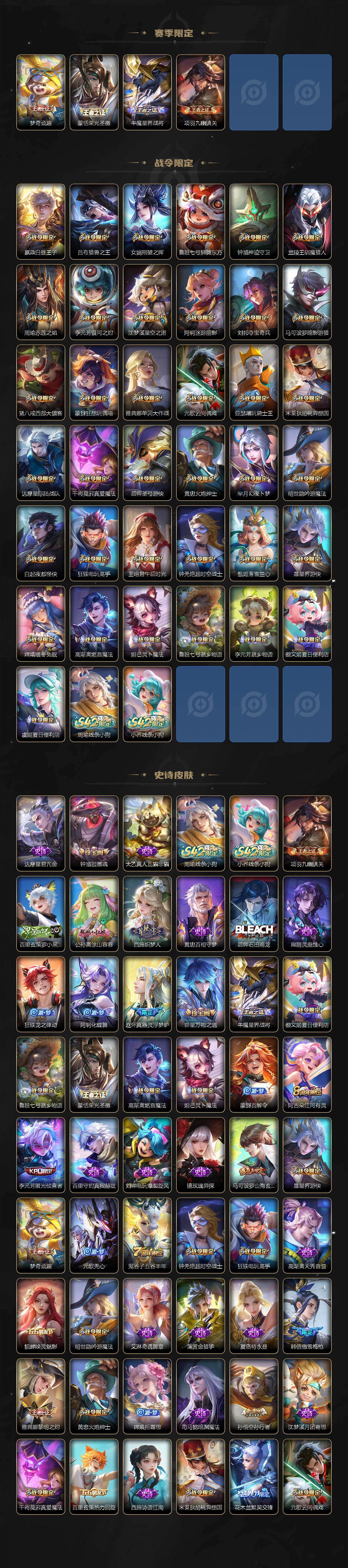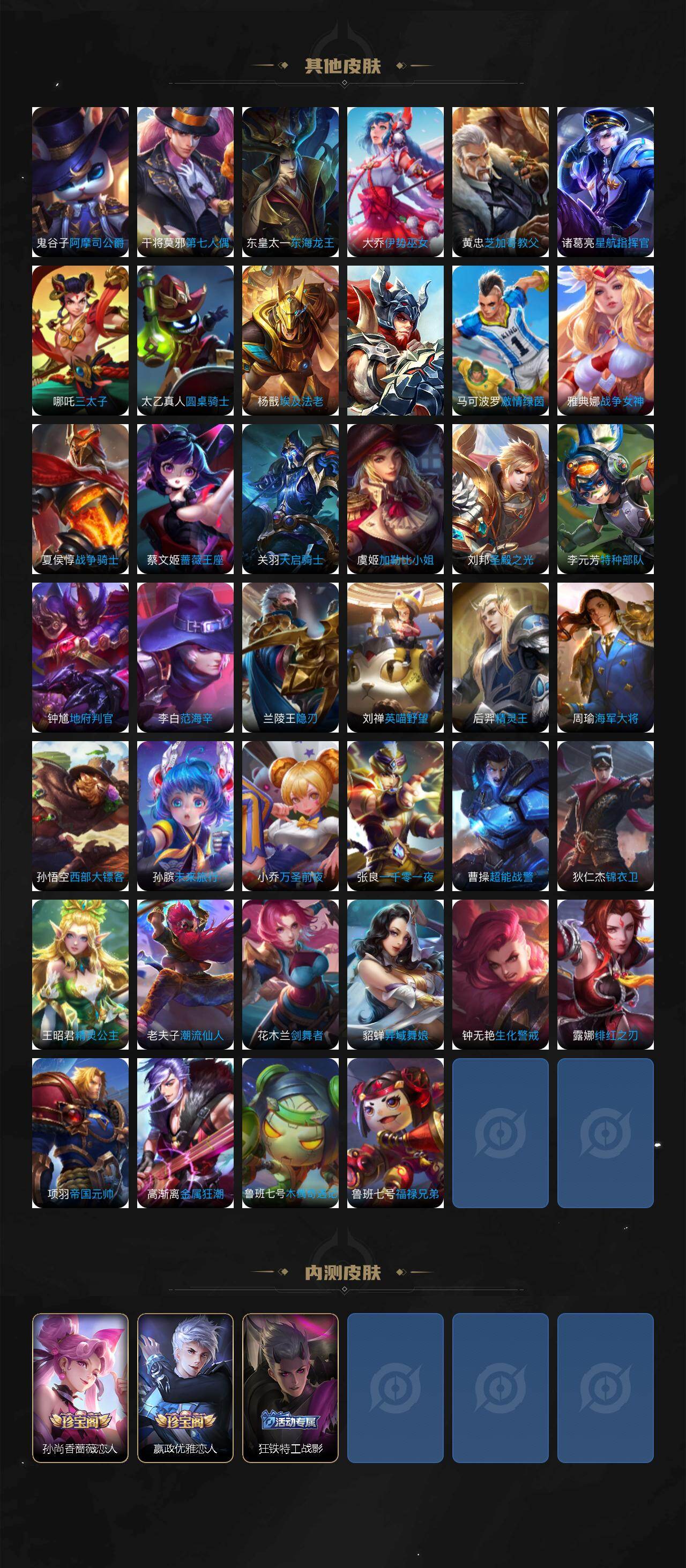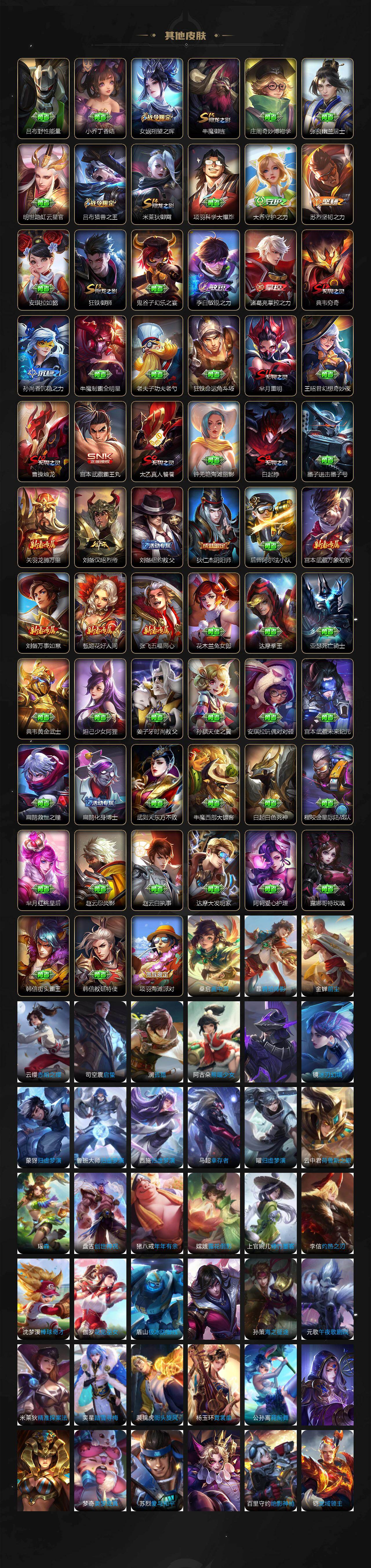 【英雄全皮】:达摩全皮,孙权全皮,狂铁全皮,敖隐全皮,夏洛特全皮,空空儿全皮,影全皮