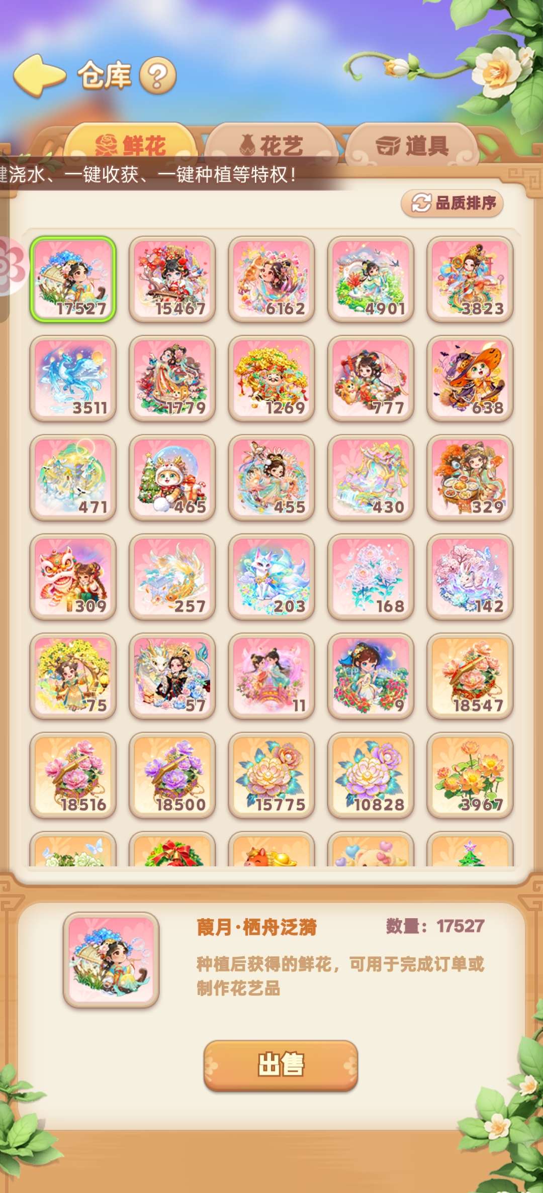 花园世界,四个花灵,氪金8000,元宝一万多,,水跟金币充足,49级出售