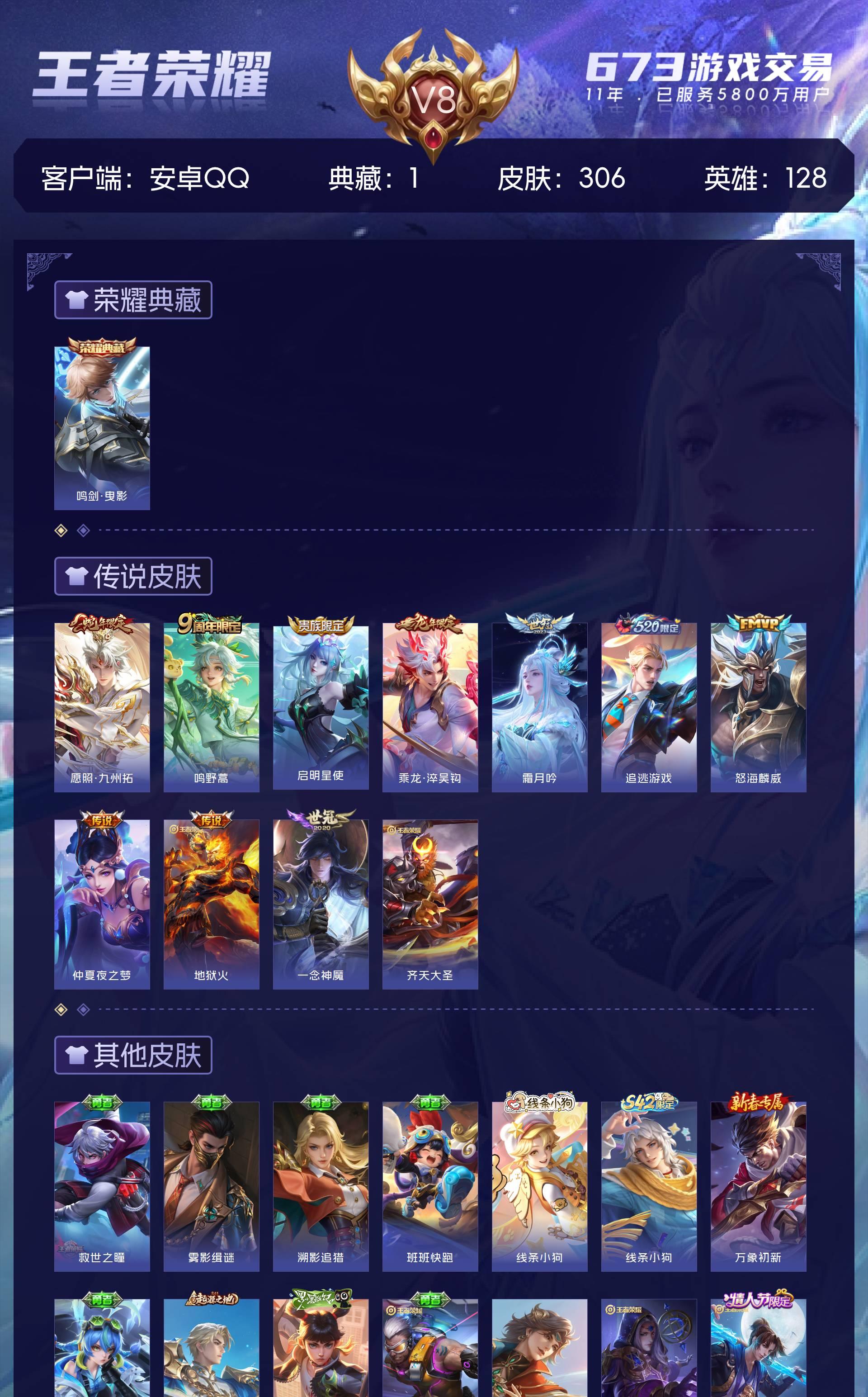 V8 皮肤306 英雄128 永恒钻石 荣耀典藏1 星传说1 传说11 其他皮肤301