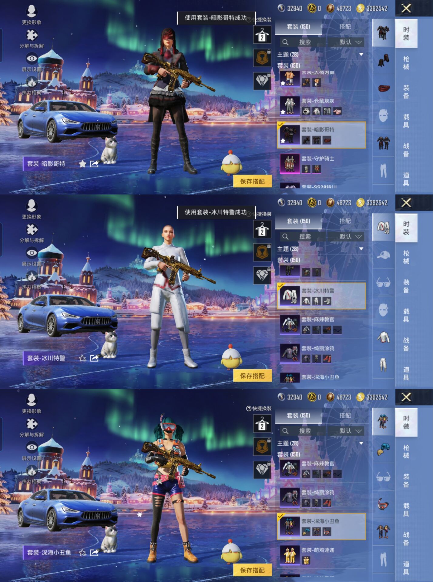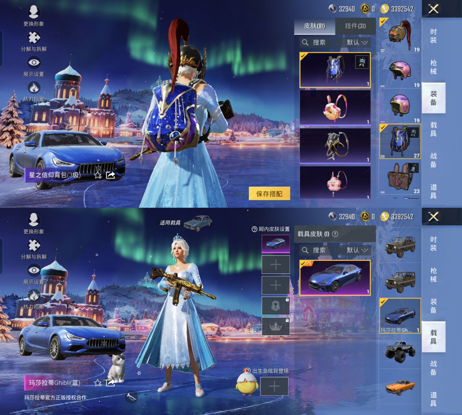 M1045340【网络热度最高素材女号 1载具5粉装4特效 雪国幻梦 深海小丑鱼 暗影哥特 神秘黑猫 冰川特警】安卓Q-1载具5粉装4特效枪17热门150套装162枪皮 53504热力值 6印记 历史超级王牌5星 【1载具】 玛莎拉蒂蓝色 【5粉装】 蝶舞迷情 雪国幻梦 木曜青龙 金曜白虎 守护骑士 【4特效枪】 M416-五爪金龙 (6级) SCAR-L-锦绣绵绵 (5级) Kar98K-巳巳如意 (2级) DP-28-豹影疾电 (2级) 【17热门】 萌神柯基 仓鼠灰灰 雪山精英 深海小丑鱼