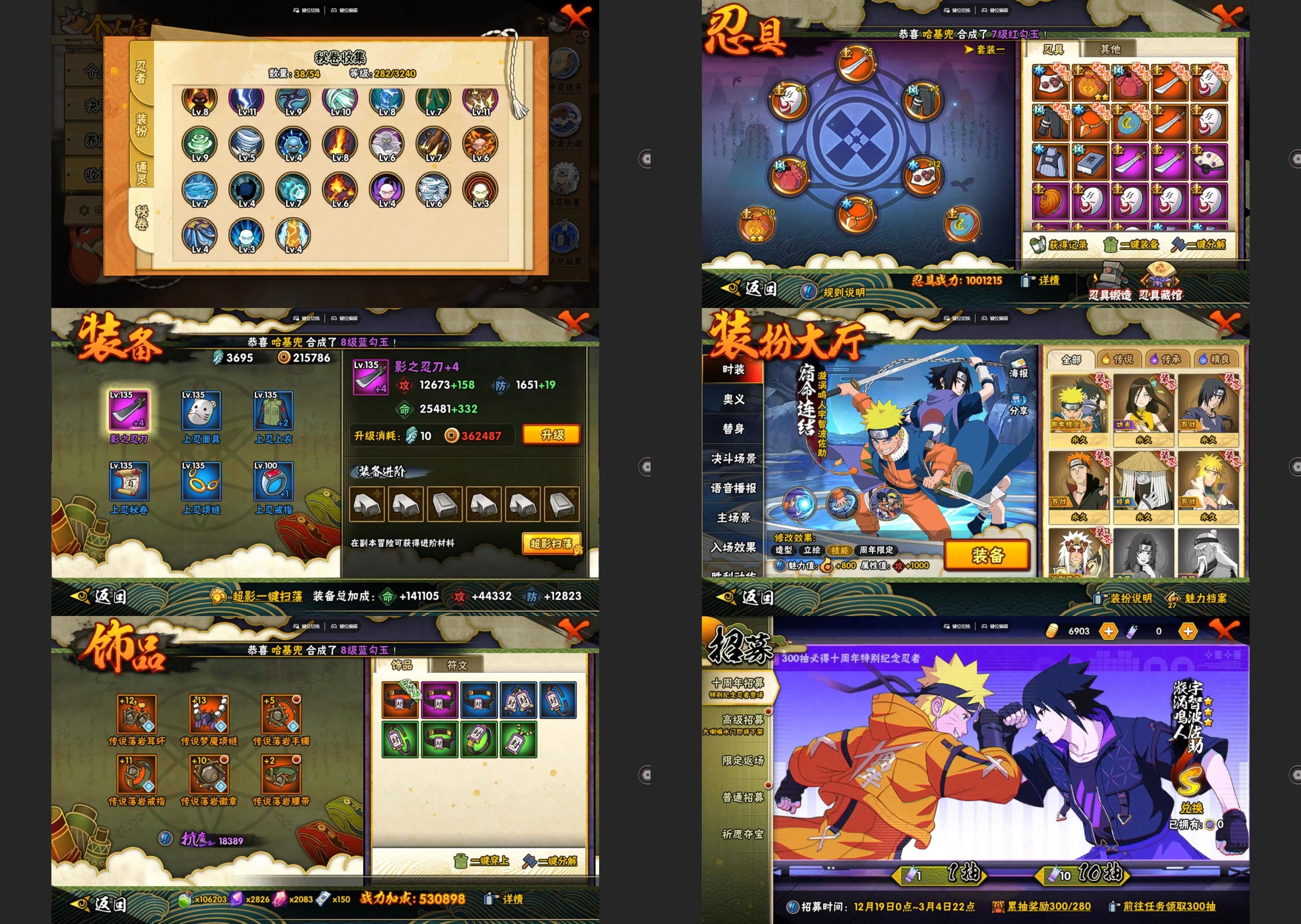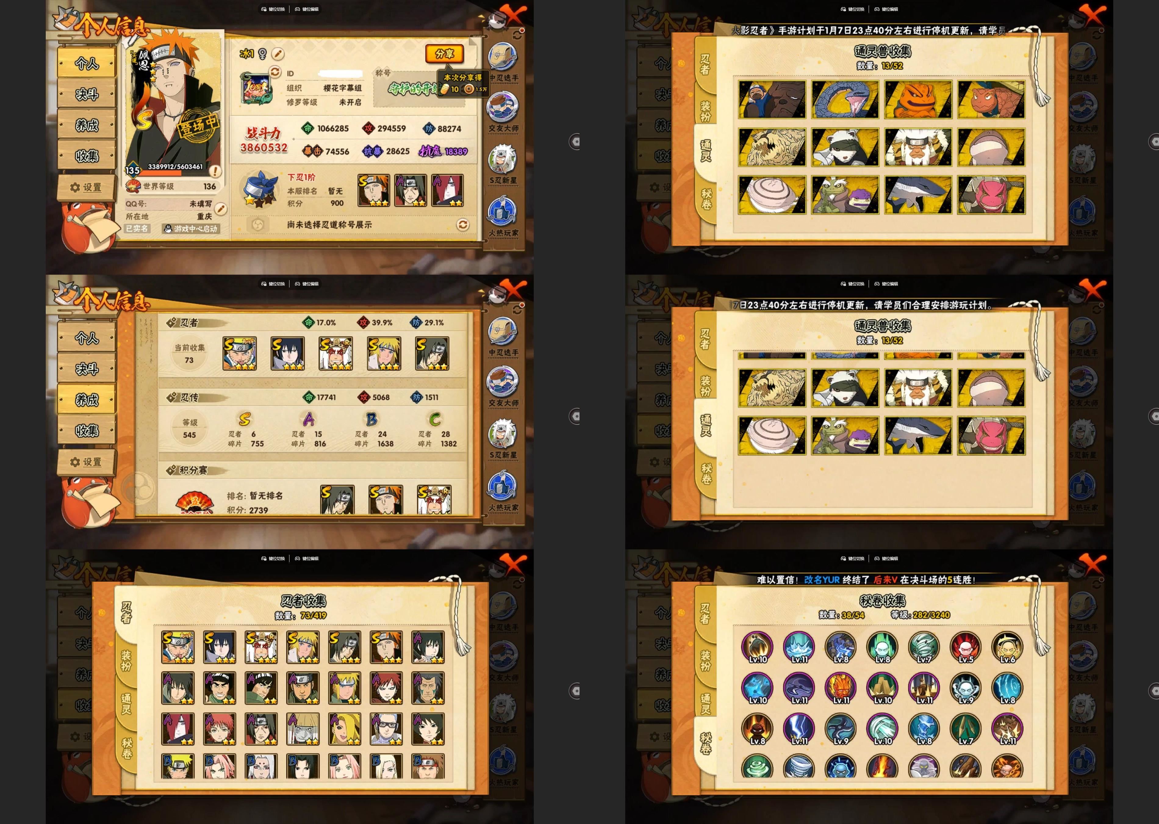 6S忍/15A忍/战力386W/V3/区服3467 【S忍者】宇智波佐助「漩涡鸣人」,宇智波佐助「永恒万花筒」,自来也「舞之豪杰」,宇智波鼬「须佐能乎」,