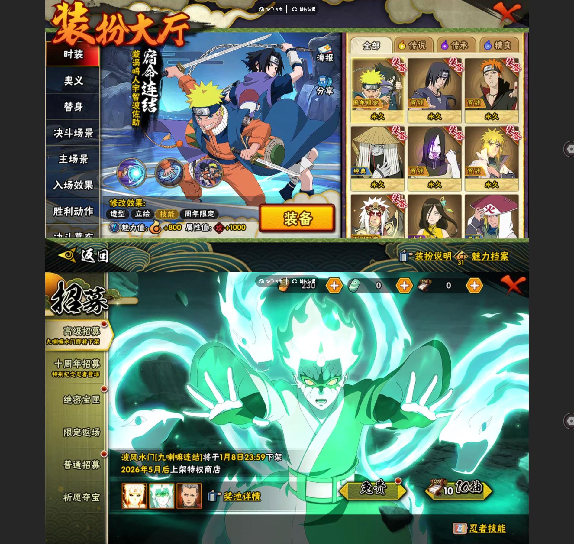 【S忍者】宇智波佐助「漩涡鸣人」,自来也「舞之豪杰」,宇智波斑「白面具」,长门「秽土转生」,宇智波鼬「须佐能乎」,佩恩「天道」,波风水门,大蛇丸,