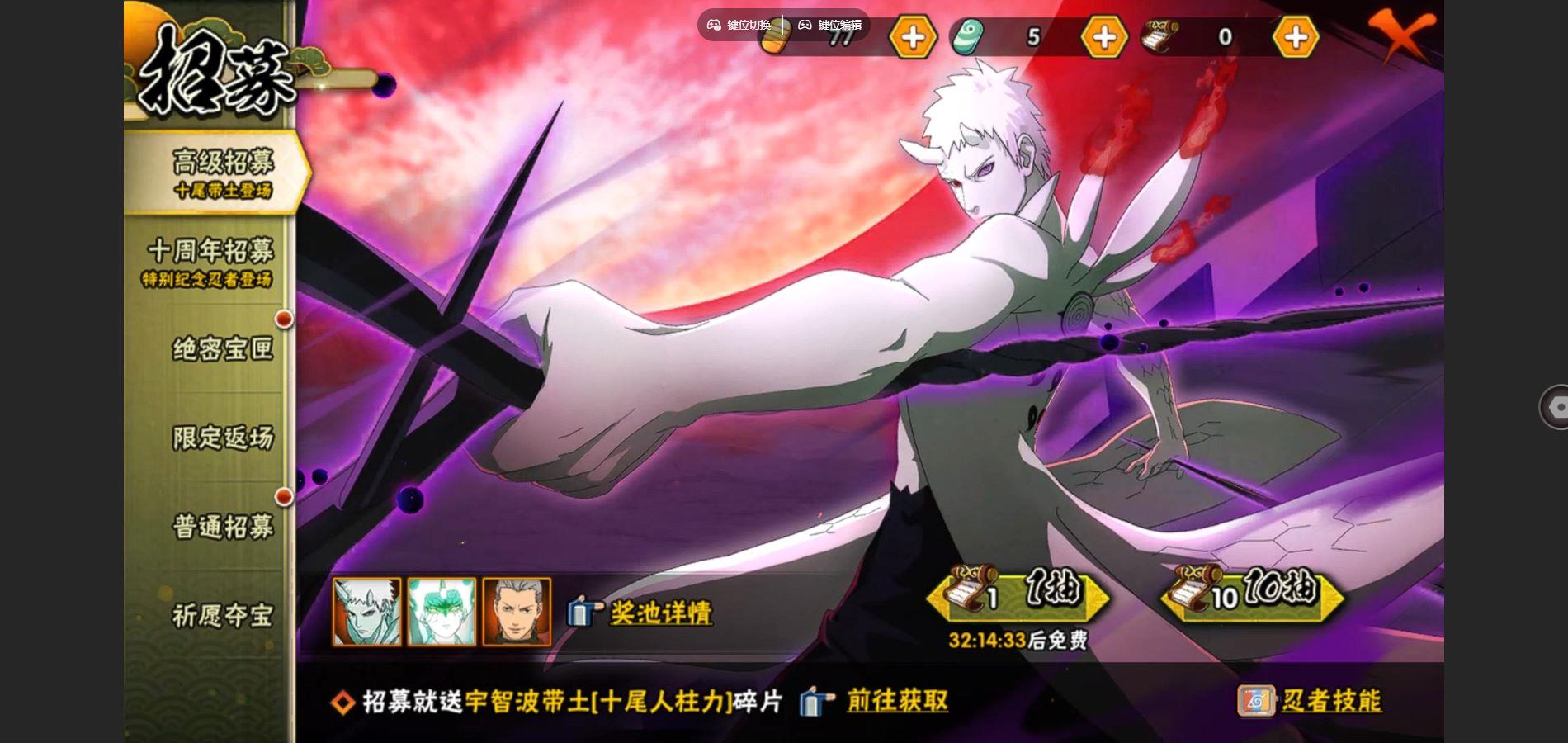 【S忍者】宇智波佐助「漩涡鸣人」,宇智波佐助「永恒万花筒」,自来也「舞之豪杰」,大筒木舍人「最终章」,自来也「传说中的三忍」,漩涡鸣人「暴怒·第六尾」,千手扉间「秽土转生」,宇智波鼬「须佐能乎」,佩恩「天道」,