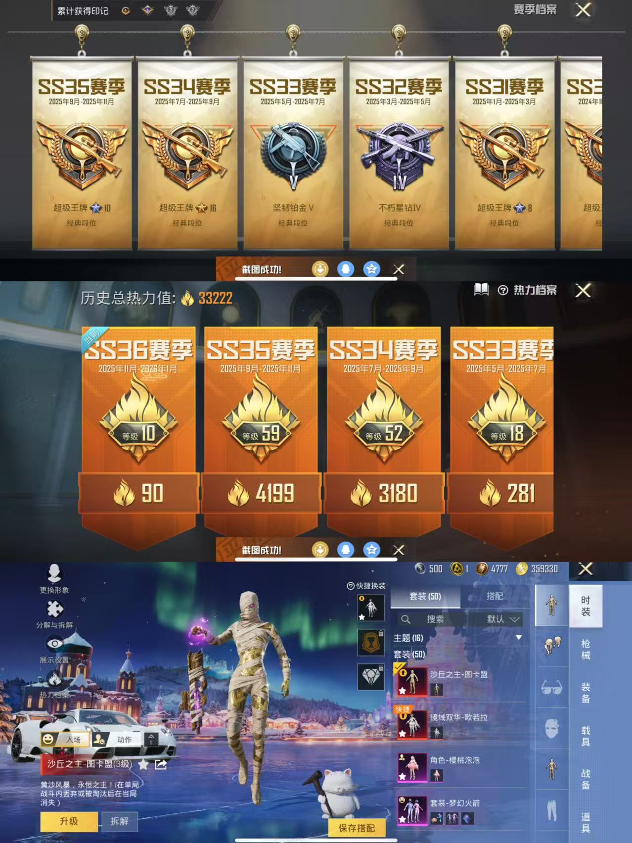 2红装2载具2粉装4特效枪2热门50套装87枪皮 33222热力值 4印记 历史卓越王牌16星