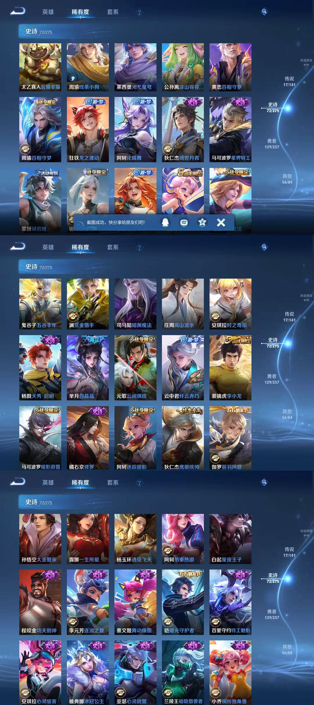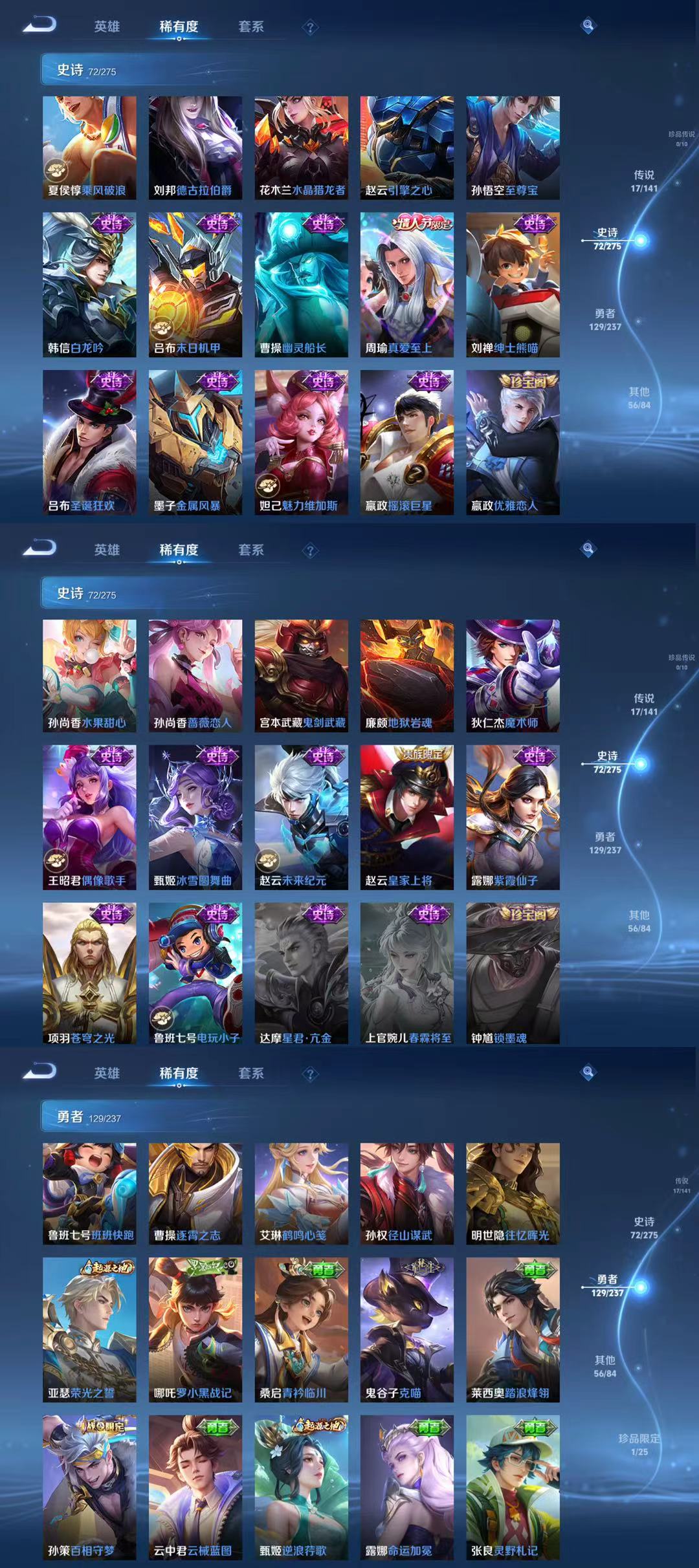 【史诗皮肤】 克喵 龙之律动 百相守梦 绮世丹青 光弋星穹 踏浪烽翎 涂山容容 一生所爱 电玩小子 白晶晶 瓦猫非猫 大圣娶亲