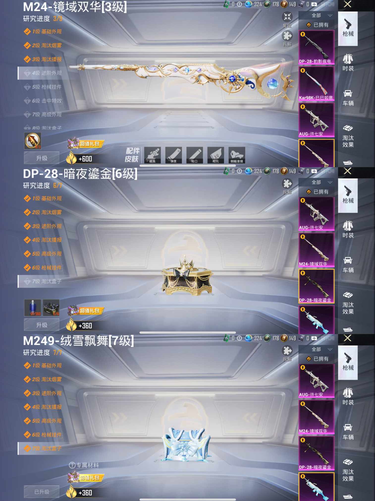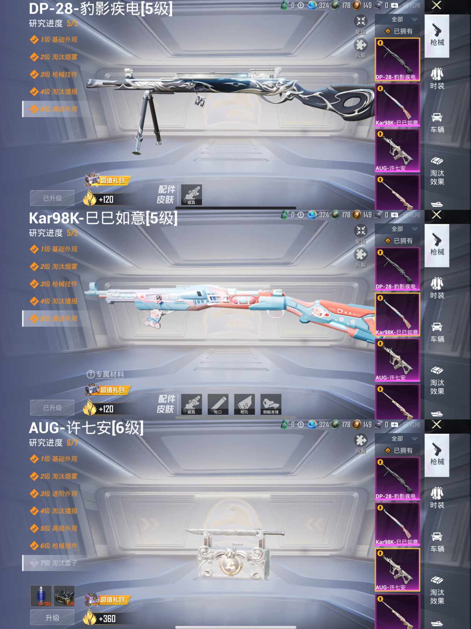1稀有1载具16粉装8特效枪27热门296套装331枪皮 113683热力值 15印记 历史超级王牌13星