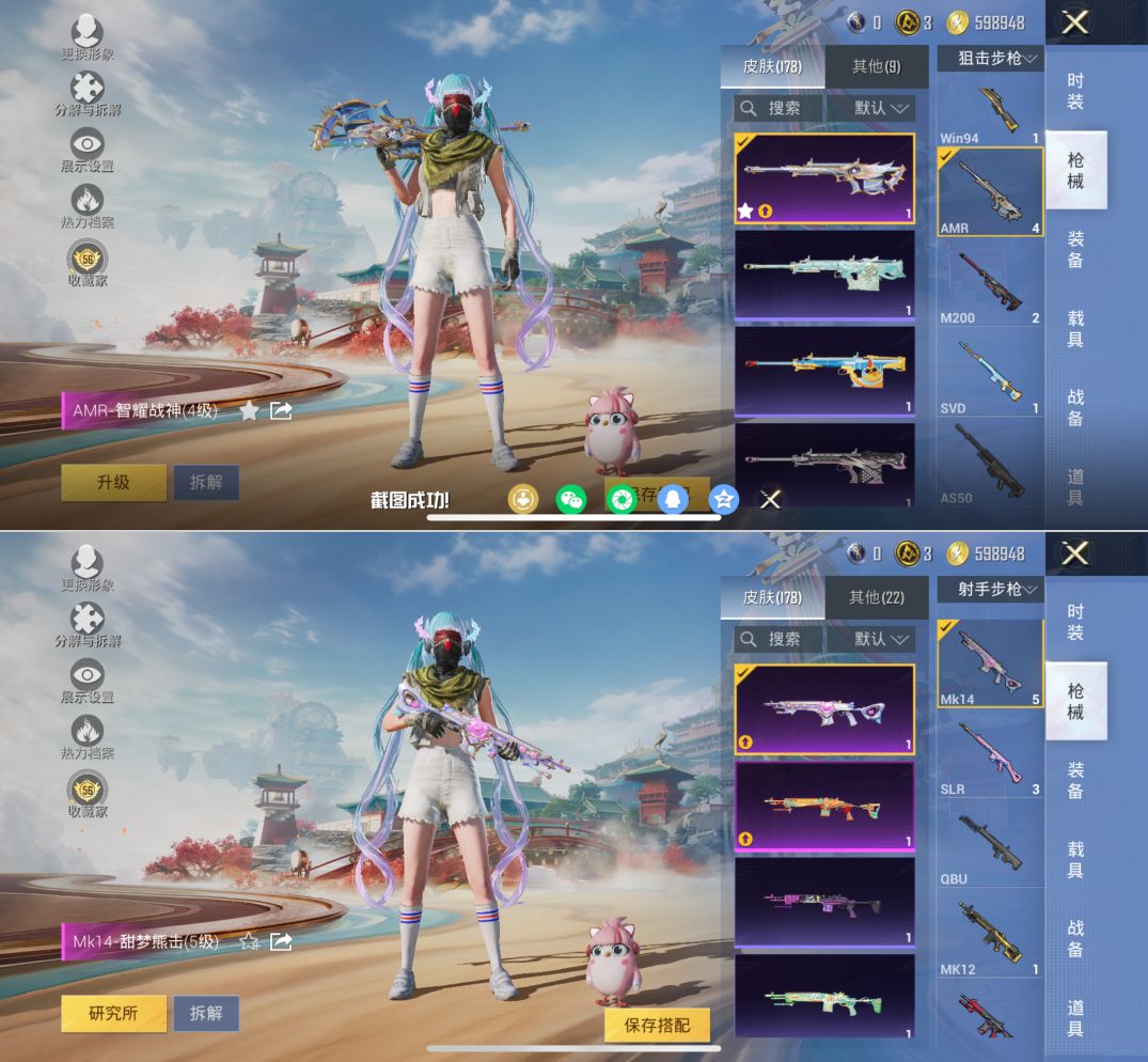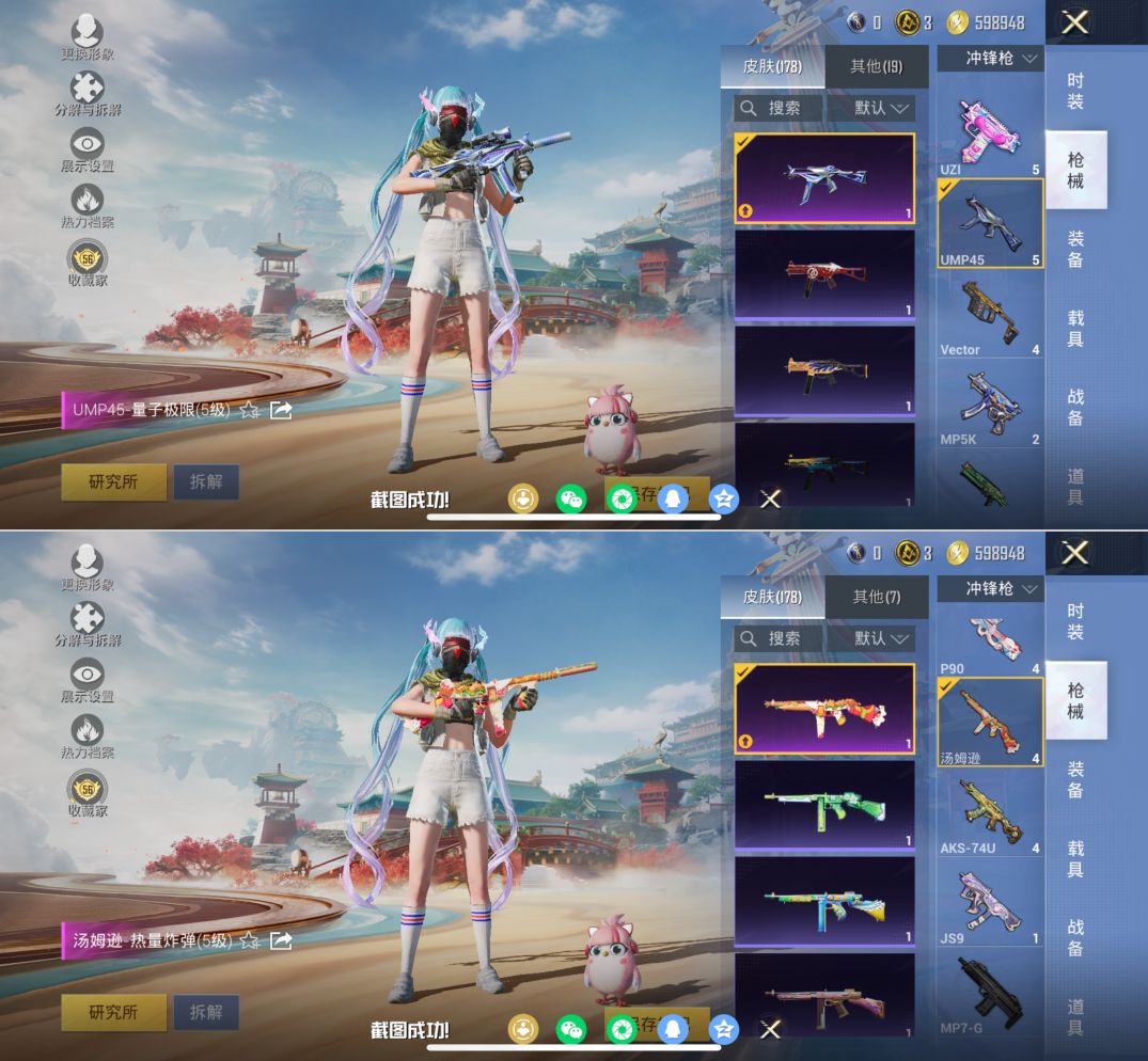 M1046739【素材号2粉装-14特效枪 创世·救赎,幻彩电音 AUG-暖羊咩咩[5级]狂沙舞者,浪漫天命,暗影哥特,NV战队服】苹果手Q-2粉装-14特效枪-112套装-178枪皮-7王牌印记-超级王牌3星-46663热力值【2粉装】创世·救赎,幻彩电音【14特效枪】AUG-暖羊咩咩[5级],DP-28-豹影疾电[5级],UMP45-量子极限[5级],AKS-74U-森灵之息[5级],Mk14-福马献瑞[5级],汤姆逊-热量炸弹[5级],AMR-智耀战神[4级],AA12-G-萌骑幻想[2级