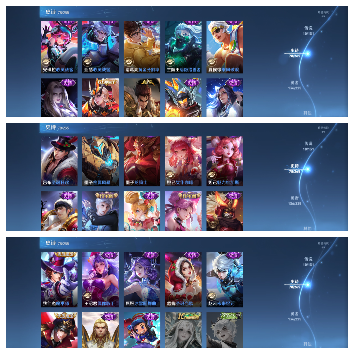 【史诗皮肤】 蔬乡物语 蔬乡物语 茶境仙 辉光之辰 器灵·浮梦炉 默契交锋 谧流熔炉 电玩小子 涂山容容 大圣娶亲 诗语江南 地狱燃心 遇见神鹿 星界特工 威尼斯狂欢 罗小黑战记 琥珀纪元 聚星闪耀 江河