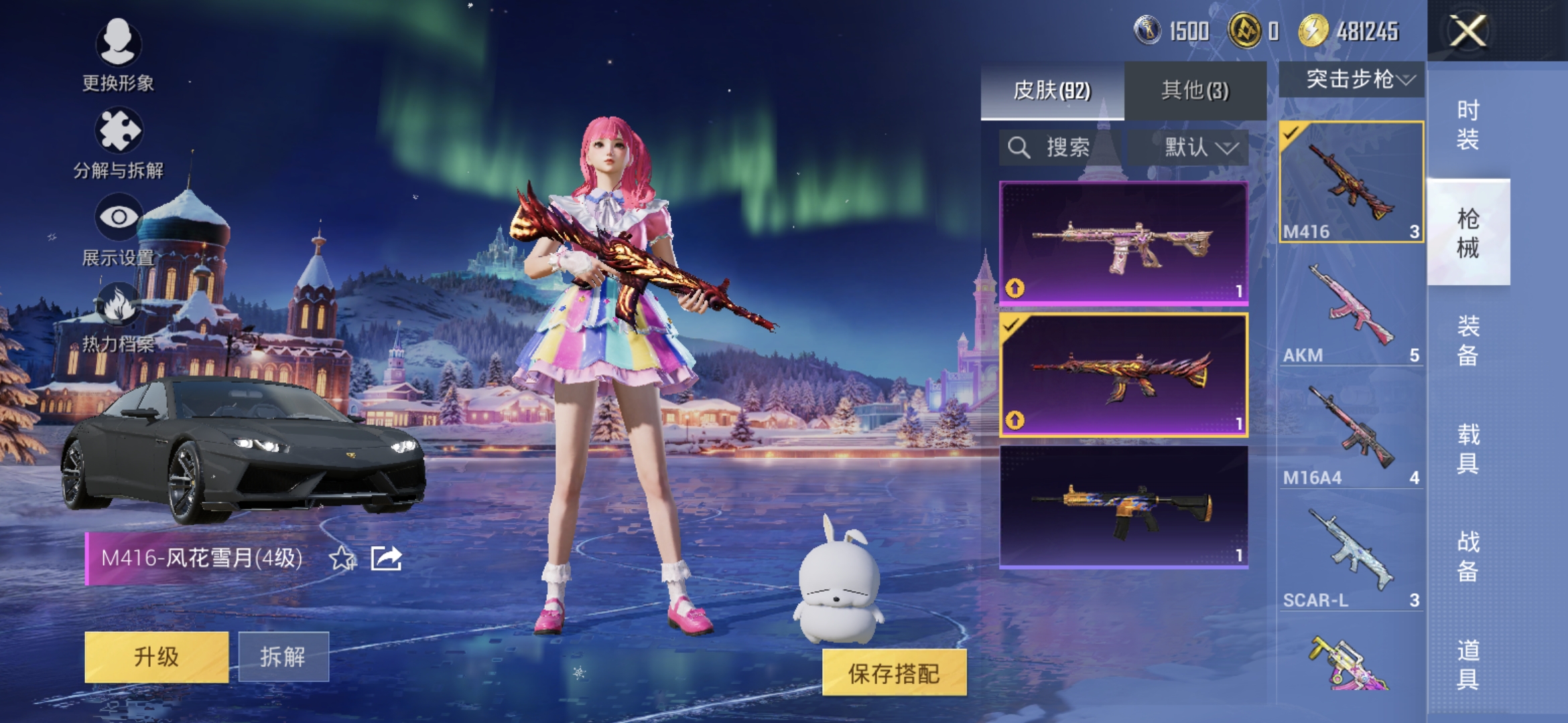 M1045750【网络公主专属雪国冰雪女王1载具5粉装2特效 雪国幻梦 天使彩虹糖 绚金瑰梦 天之羽翼 心之恋语 (7级) 风花雪月 (4级) 】安卓Q-1载具5粉装2特效枪10热门64套装91枪皮 31976热力值 4印记 历史超级王牌8星 【1载具】 兰博轿车灰色 【5粉装】 雪国幻梦 天使彩虹糖 绚金瑰梦 天之羽翼 寒光使者 【2特效枪】 M416-心之恋语 (7级) M416-风花雪月 (4级) 【10热门】 激萌罗小黑 神秘黑猫 醒狮腾龙 团圆交子 瑞龙福将 纯白誓言 粉红小猪 破蛋
