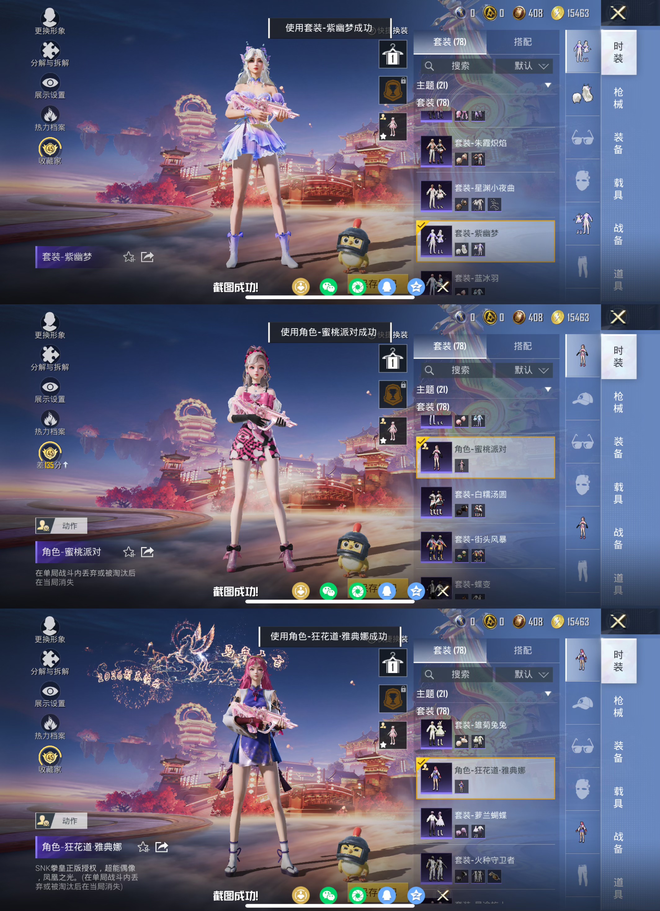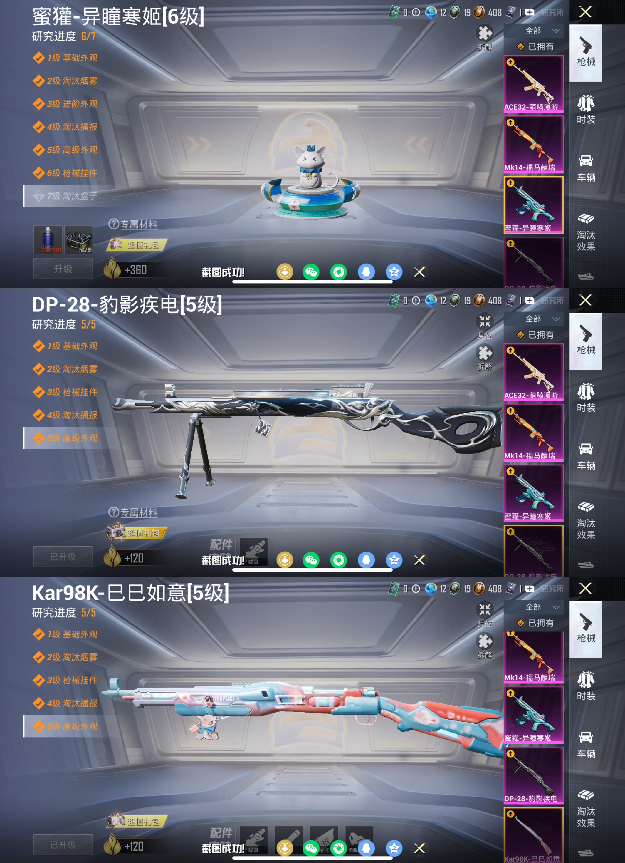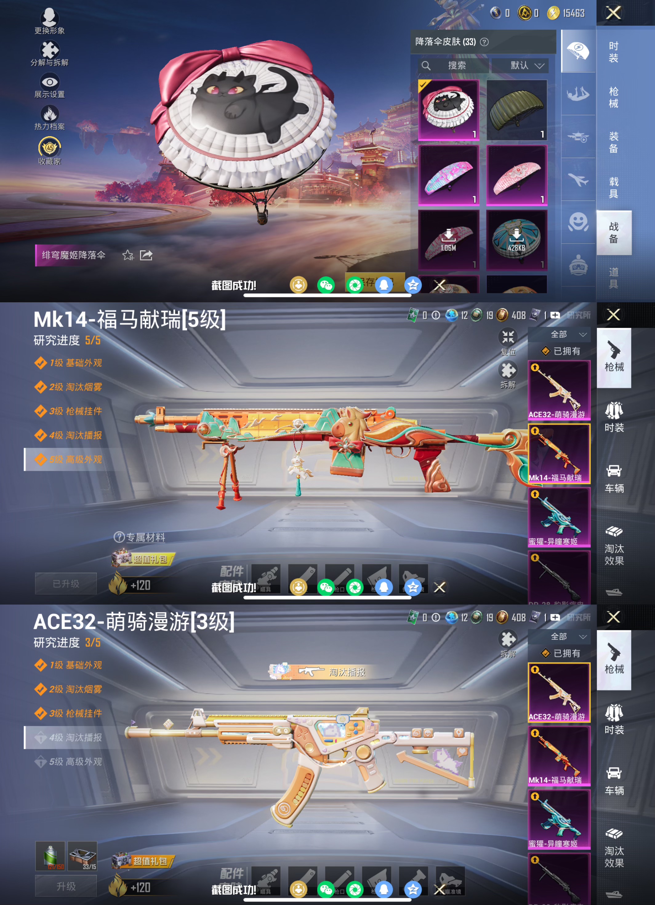 苹果手Q-3粉装-5特效枪-78套装-113枪皮-3王牌印记-不朽