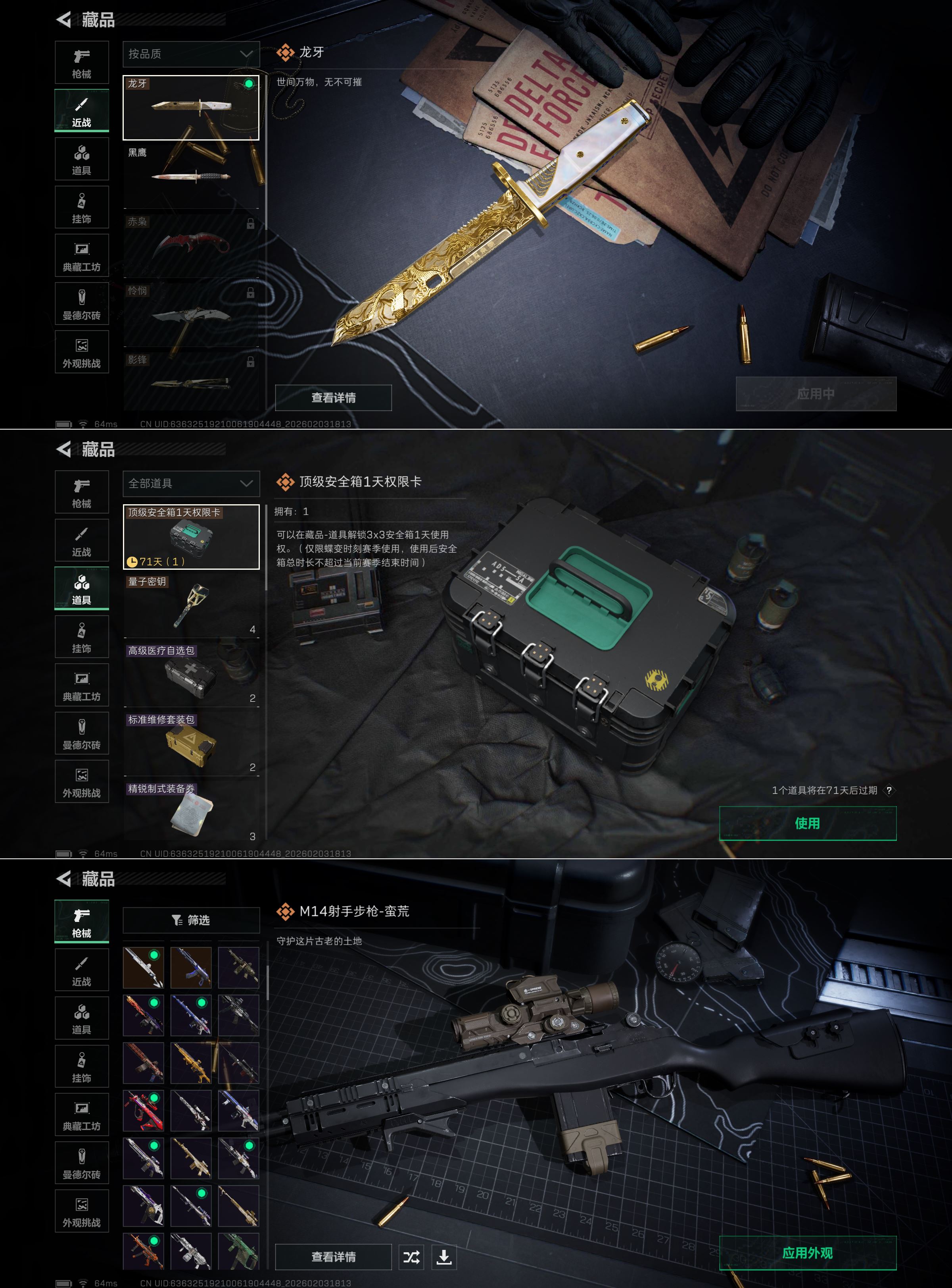 WLSJZ915【总资产153.9M 1259K 传说24 优品A美杜莎 优品S气象感应 优品B命运 龙牙 4干员皮肤】三端互通-总价值153.46M-哈夫币1,259.42-烽火地带等级60-烽火地带段位钻石【干员皮肤】露娜-金牌射手 红狼-电锯惊魂 深蓝-不破誓约 蜂医-送葬人·无题密令 无名-夜鹰【近战武器】黑鹰 龙牙【枪皮】AK-12突击步枪-淘金者 AKM突击步枪-黄铜 AUG突击步枪-猛兽 M7战斗步枪-噬菌体 M7战斗步枪-噬菌体 AS Val突击步枪-地平线 K416突击步枪-命