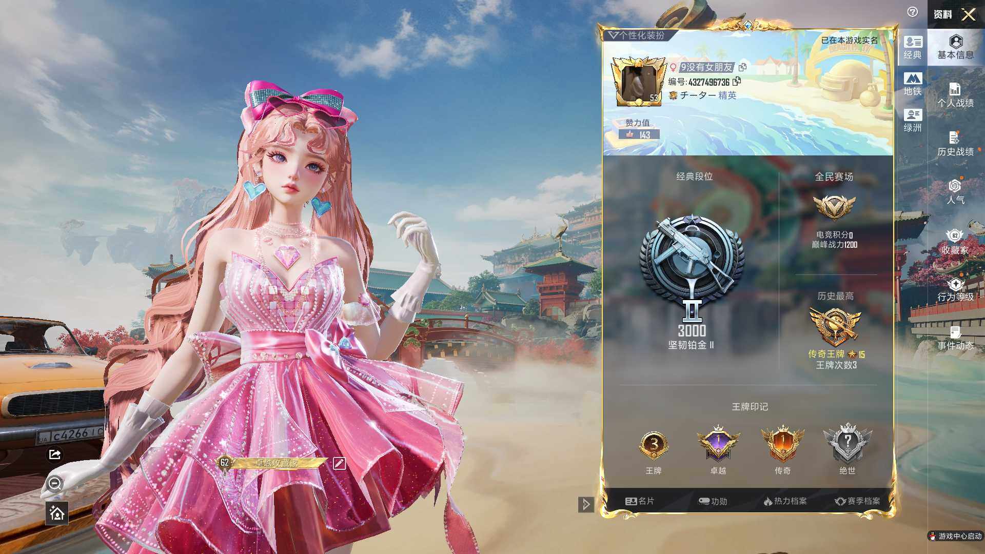 可二次【特价出售/店主推荐】安卓 手Q-5粉装-12特效枪-1载具-1粉色飞行器-58640热力值-3王牌印记-117套装-181枪皮