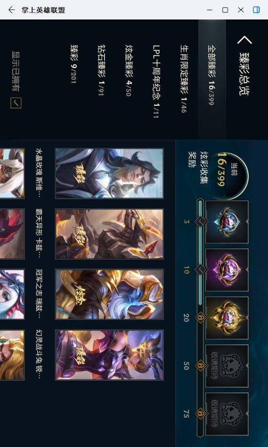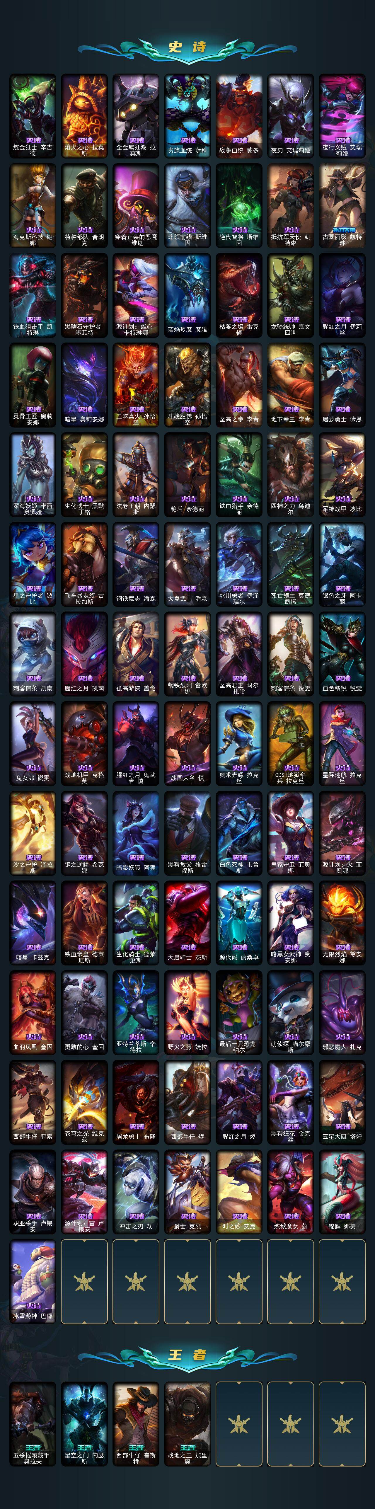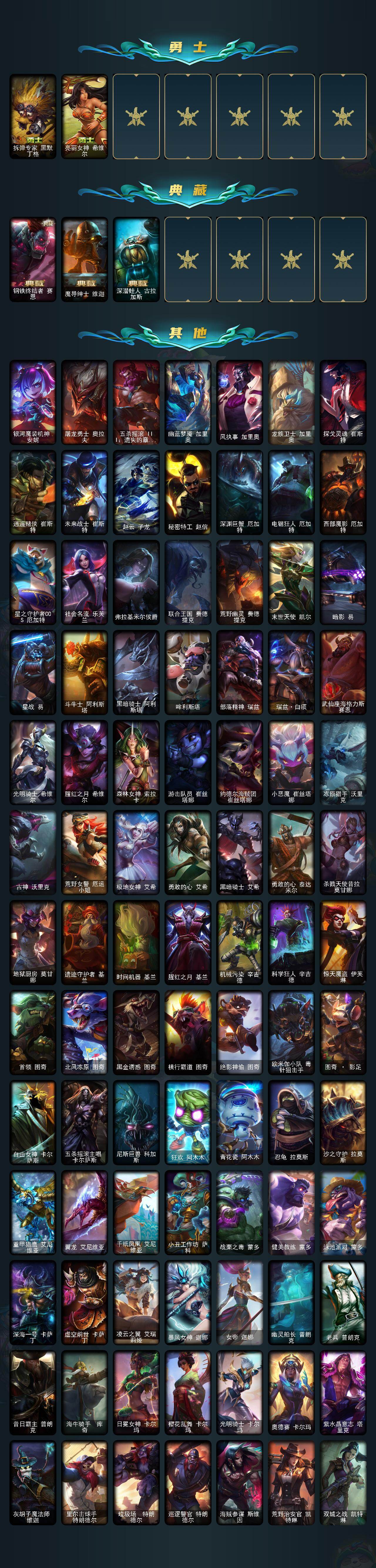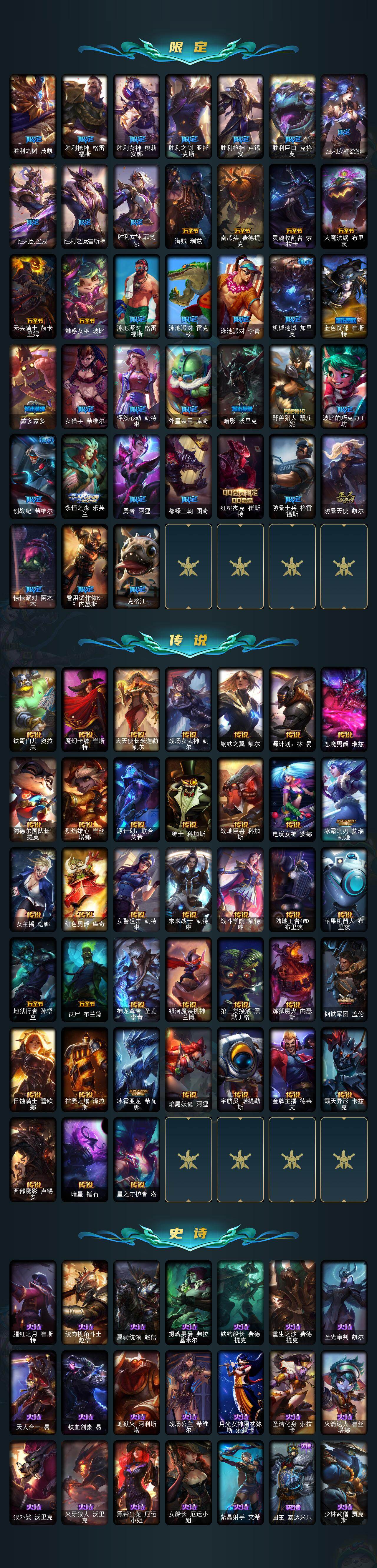 未定级段位-172英雄-480皮肤-169炫彩-1终极-7神话-89限定-38传说-113史诗