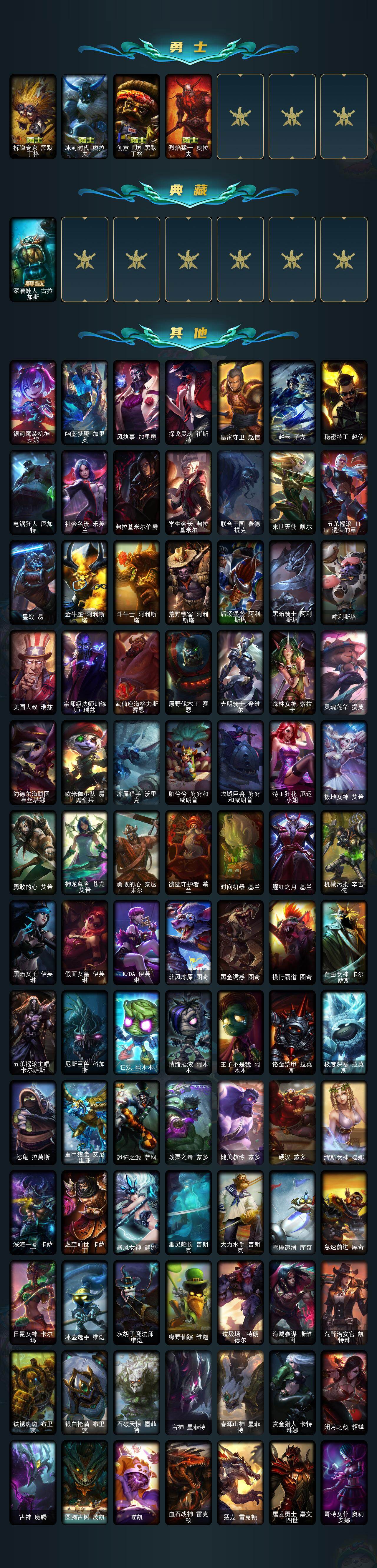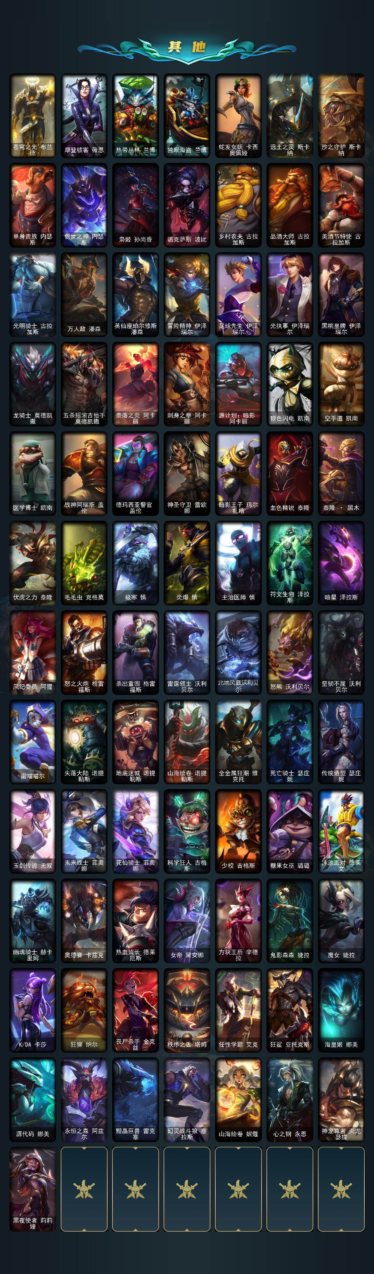 未定级段位-172英雄-340皮肤-147炫彩-3终极-4神话-49限定-28传说-