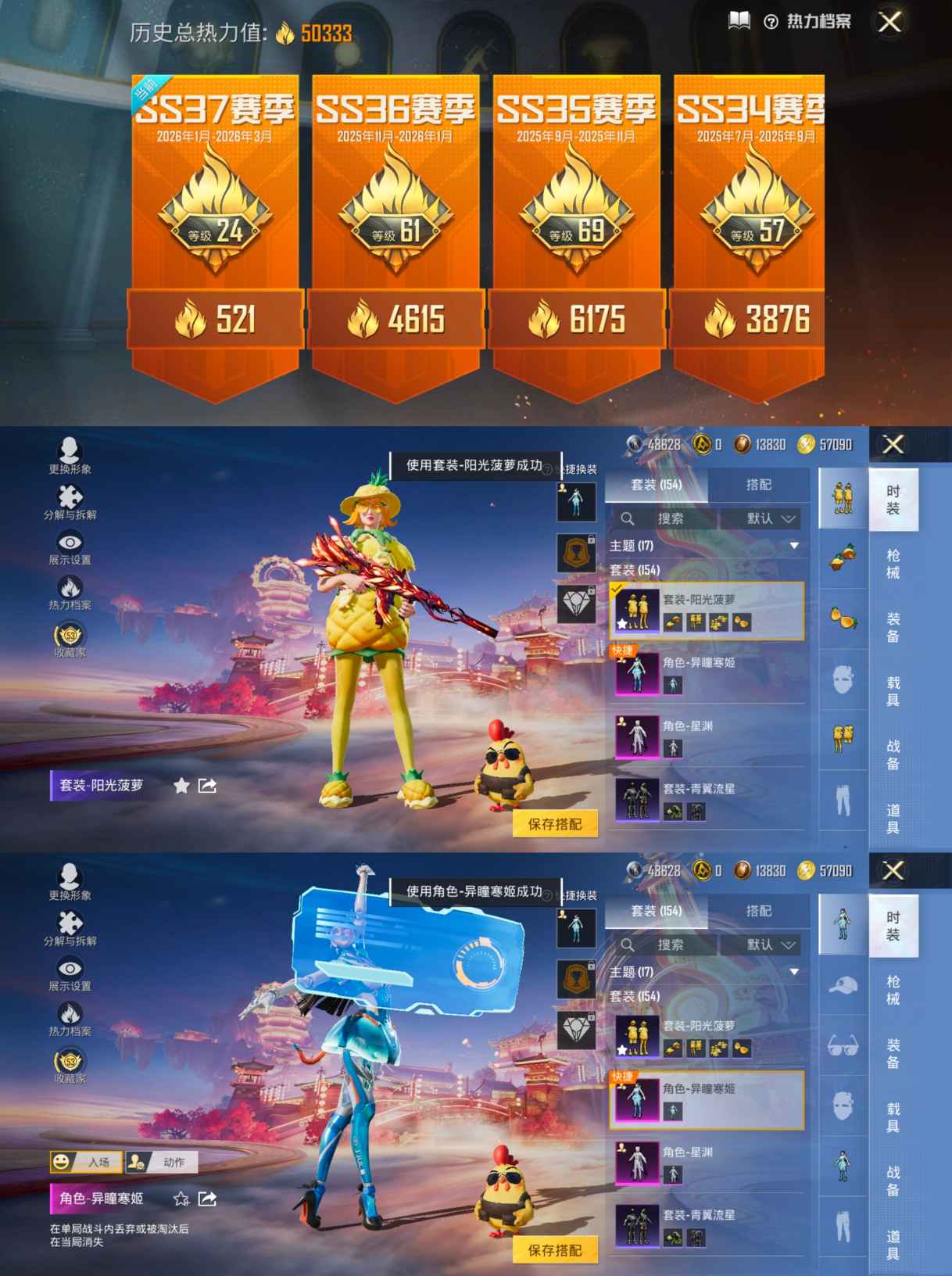 2粉装-3特效枪-154套装-182枪皮-12王牌印记-坚韧铂金Ⅴ-50333热力值