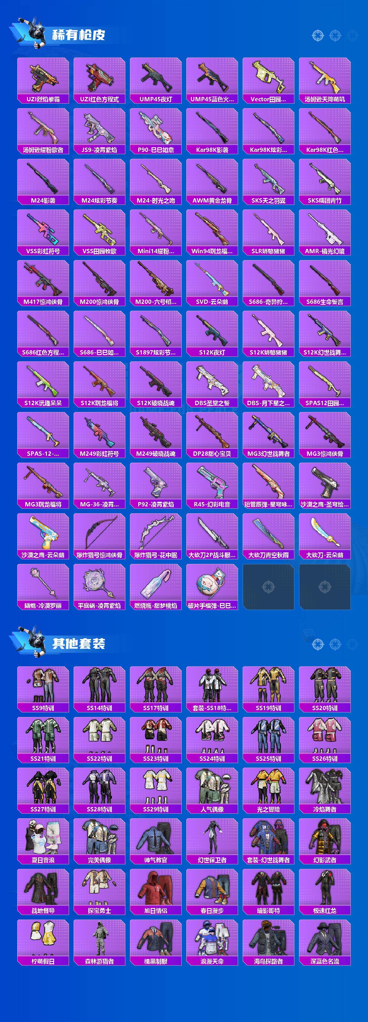 XS11396【1粉装-5特效枪 浪漫天命 都市猎人 深海小丑鱼 AG战队服 暗影哥特 】苹果手Q-1粉装-5特效枪-161套装-207枪皮-10王牌印记-荣耀皇冠Ⅰ-58721热力值【1粉装】星穹咏叹调【5特效枪】Kar98K-巳巳如意[5级],蜜獾-异瞳寒姬[7级],Mk14-福马献瑞[5级],ACE32-萌骑漫游[4级],DP-28-豹影疾电[5级]【7稀有】都市猎人,浪漫天命,深海小丑鱼,AG战队服,暗影哥特,S686-奇异狩猎者,AWM-黄金龙骨【7飞行器】异域银装飞行器,狂鲨锋刃飞行