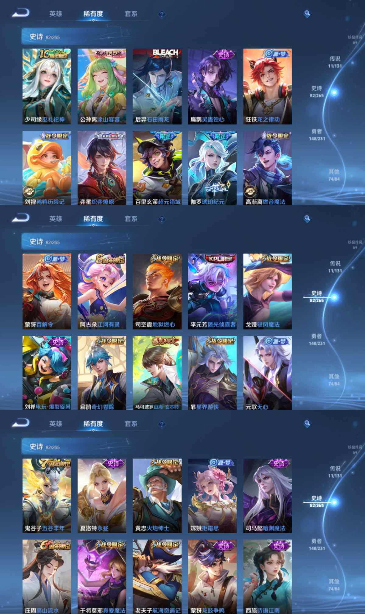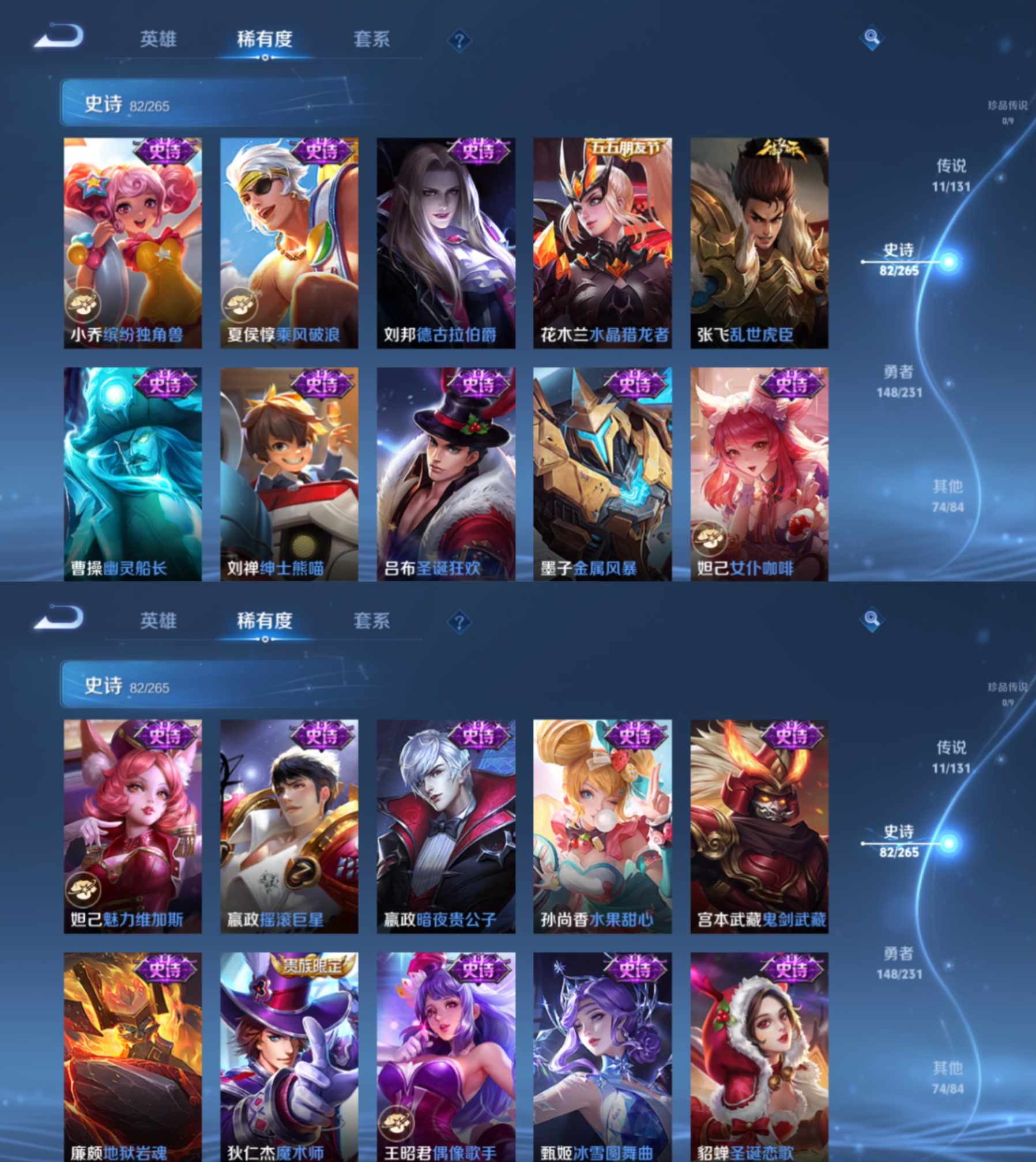 【史诗皮肤】 灵蛊蚀心 龙之律动 炽弈燎原 鸭鸭历险记 石田雨龙 涂山容容 小满鸭 御风骁将 神威 诗语江南 地狱燃心 热血海滩 西部游侠 灵野札记 山海·玄木吟 春野闲踪 鸭鸭历险记 虚灵犬护 浪漫序章 潮玩