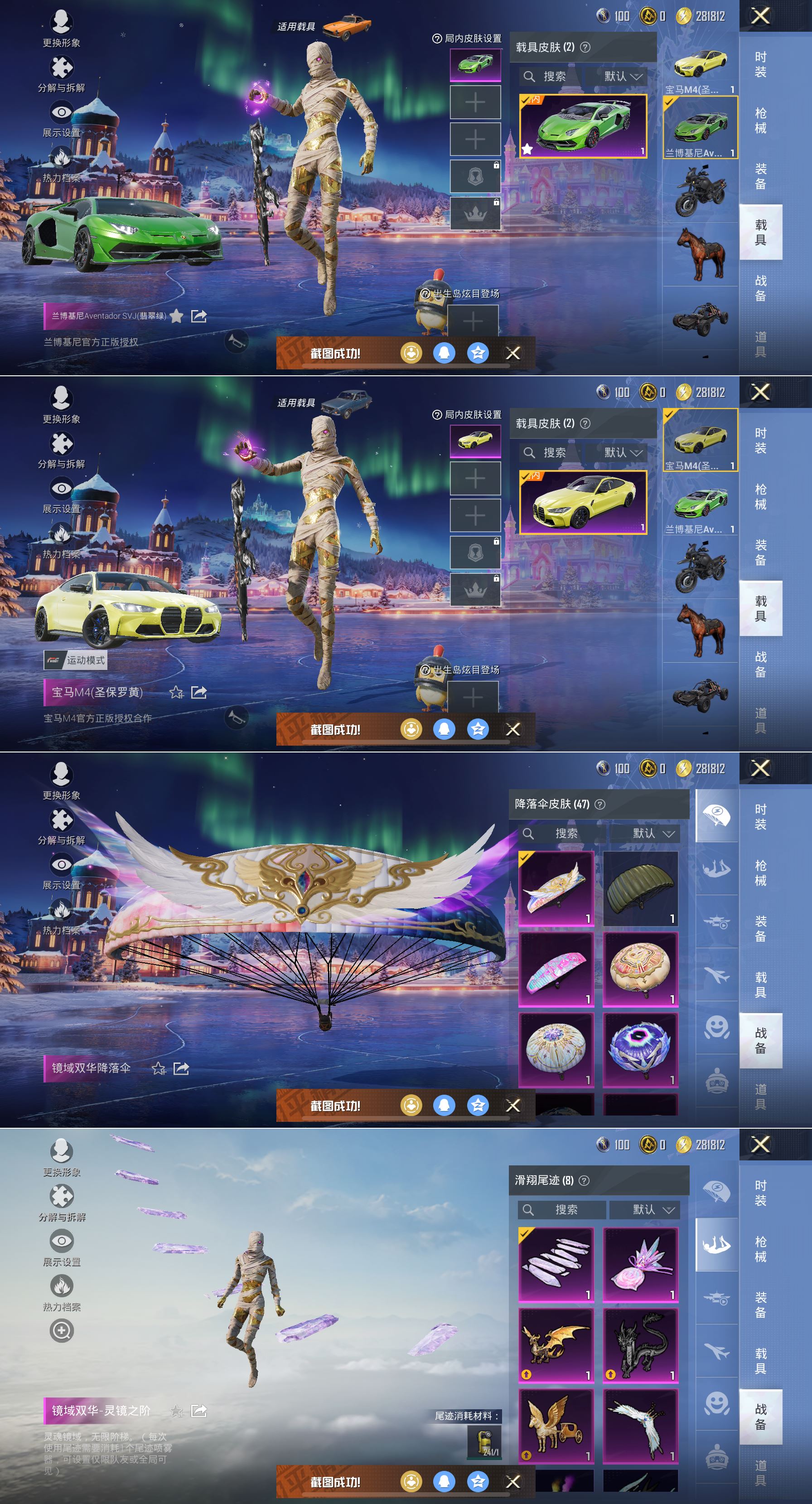 【1红装】 沙丘之主-图卡盟 (5级) 【2载具】 宝马M4(圣保罗黄) 兰博SVJ绿色