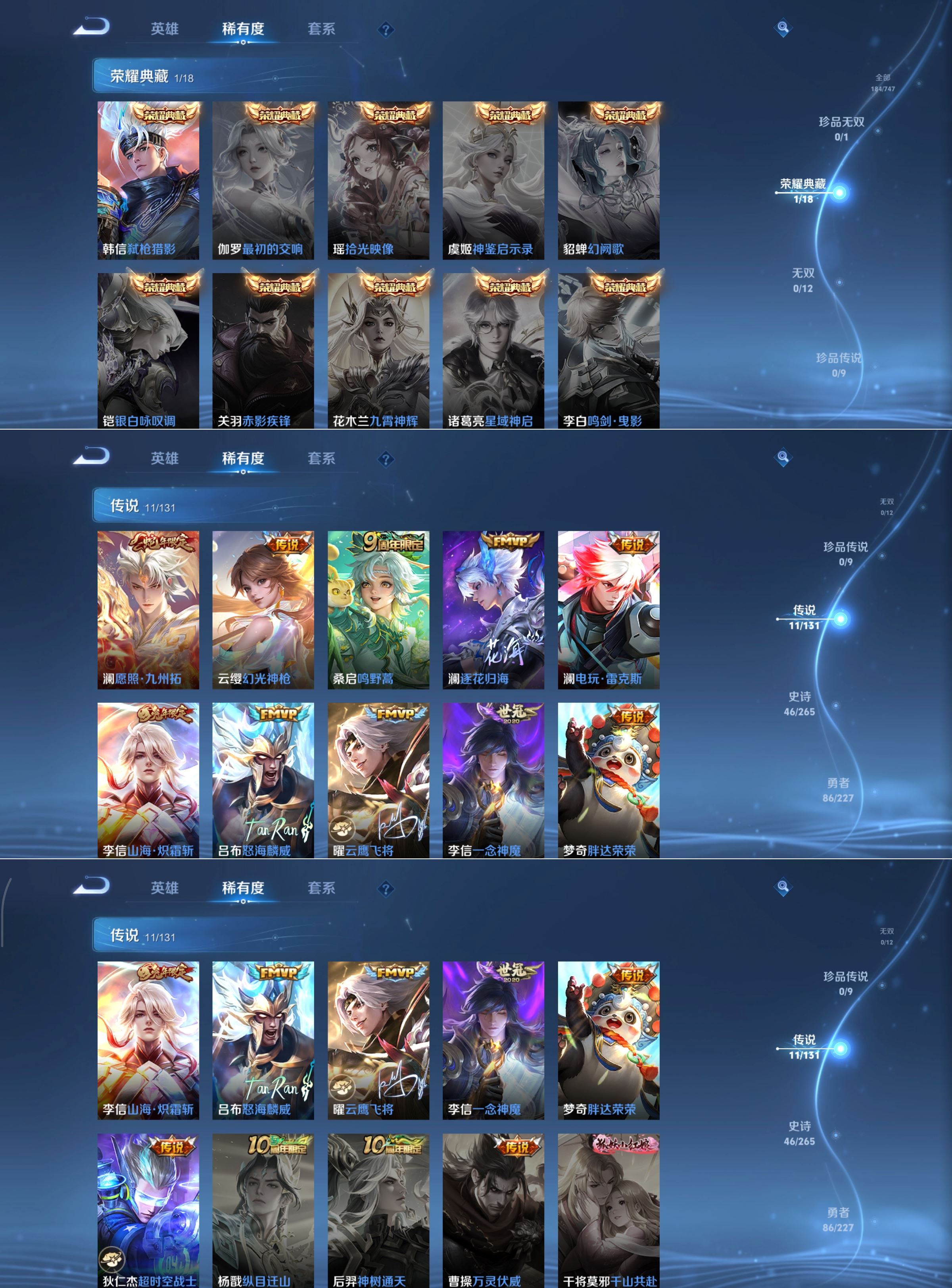 安卓Q-至尊星耀IV-125英雄-184皮肤-1典藏-11传说-46史诗【典藏
