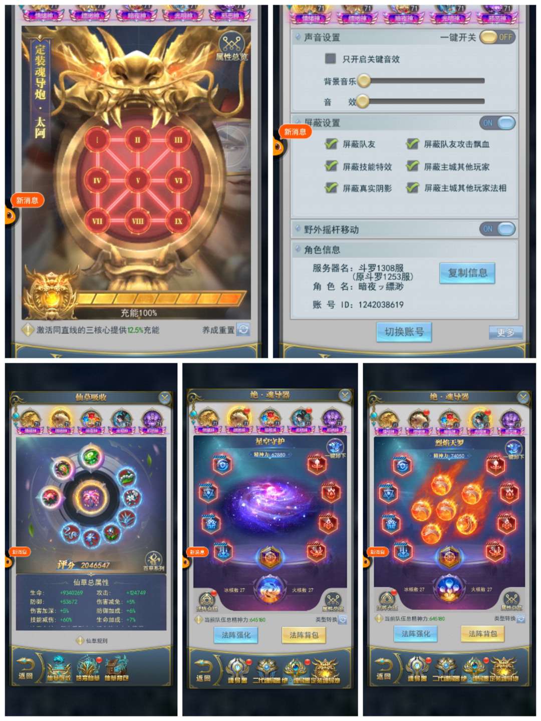 出斗罗服,1308区,9排大奖,35亿战力,双神套,5套魂骨,满真身龙魂,2套圣纹,两套绝魂导器