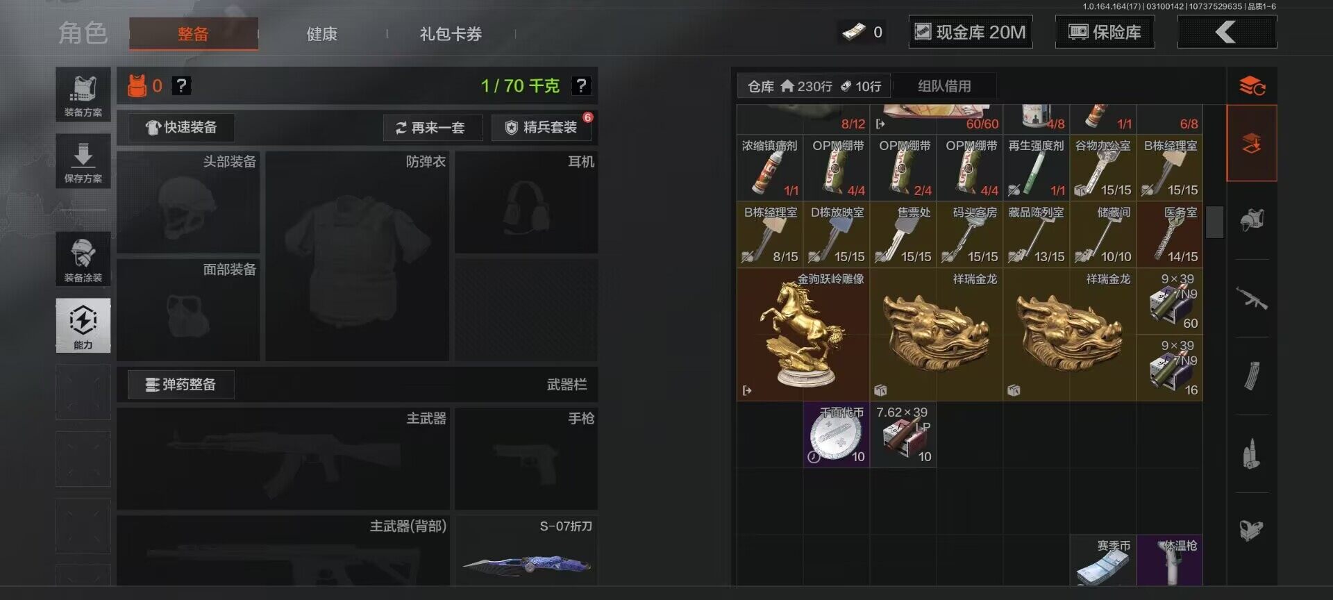 段位:王牌/仓库价值(百万):29/S-07折刀/套金客莫雷尔