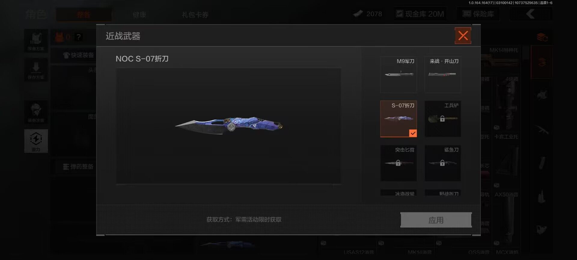 【AQQH783】段位:王牌/仓库价值(百万):29/S-07折刀/套金客莫雷尔