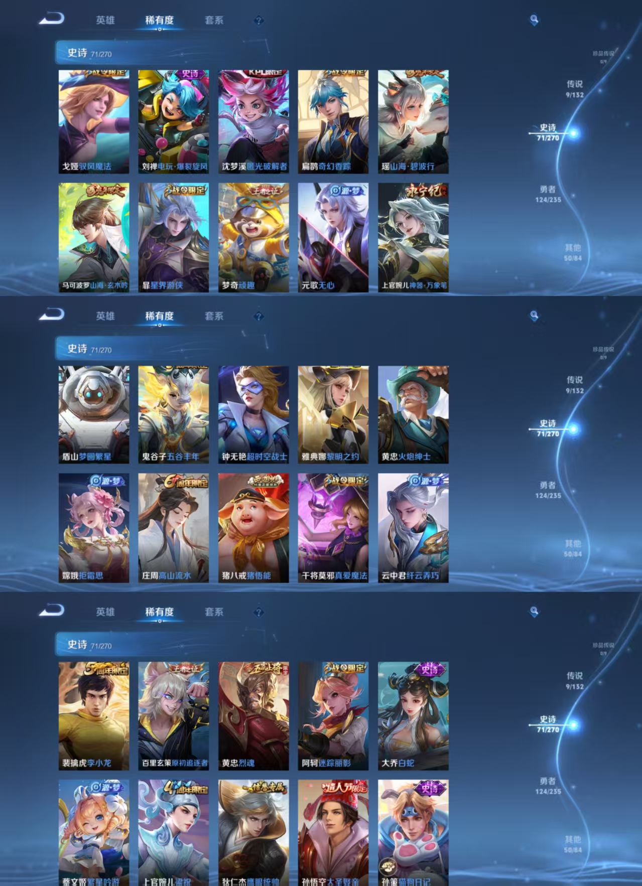 【史诗皮肤】 破空之剑 光弋星穹 百相守梦 梦圆繁星 涂山容容 烈魂 电玩小子 大圣娶亲 地狱燃心 西部游侠 山海·玄木吟 山海·碧波行 谧流熔炉 劲辣红锅 线条小狗 巫礼祀神 熊喵少女 威尼斯狂欢 命运加冕 铁骨偃