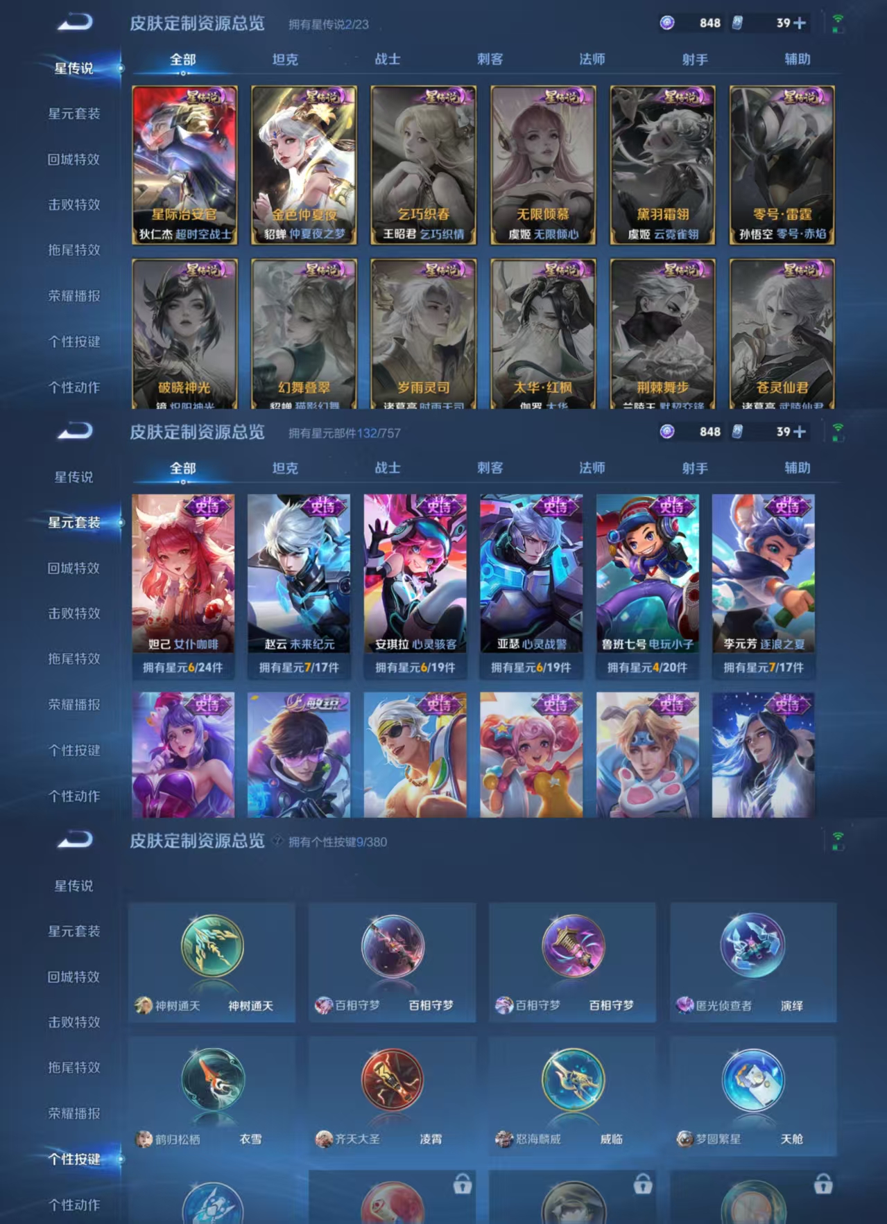 【传说皮肤】 鸣野蒿 鹤归松栖 神树通天 山海·苍雷引 山海·琳琅生 齐天大圣 山海·炽霜斩 淬星耀世 怒海麟威