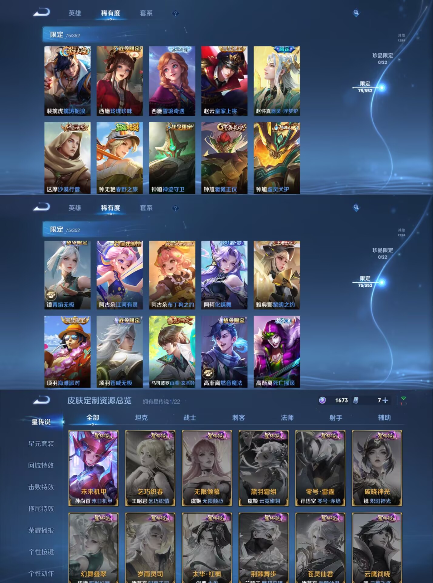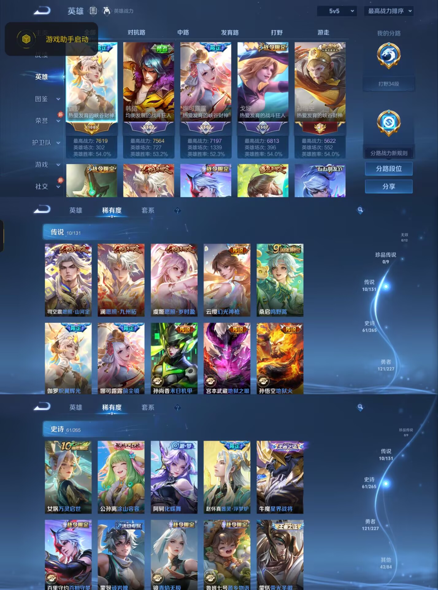 WLWZ896【V7 传说10星传说1未来机甲打野34段】安卓Q-非凡王者-125英雄-234皮肤-10传说-61史诗