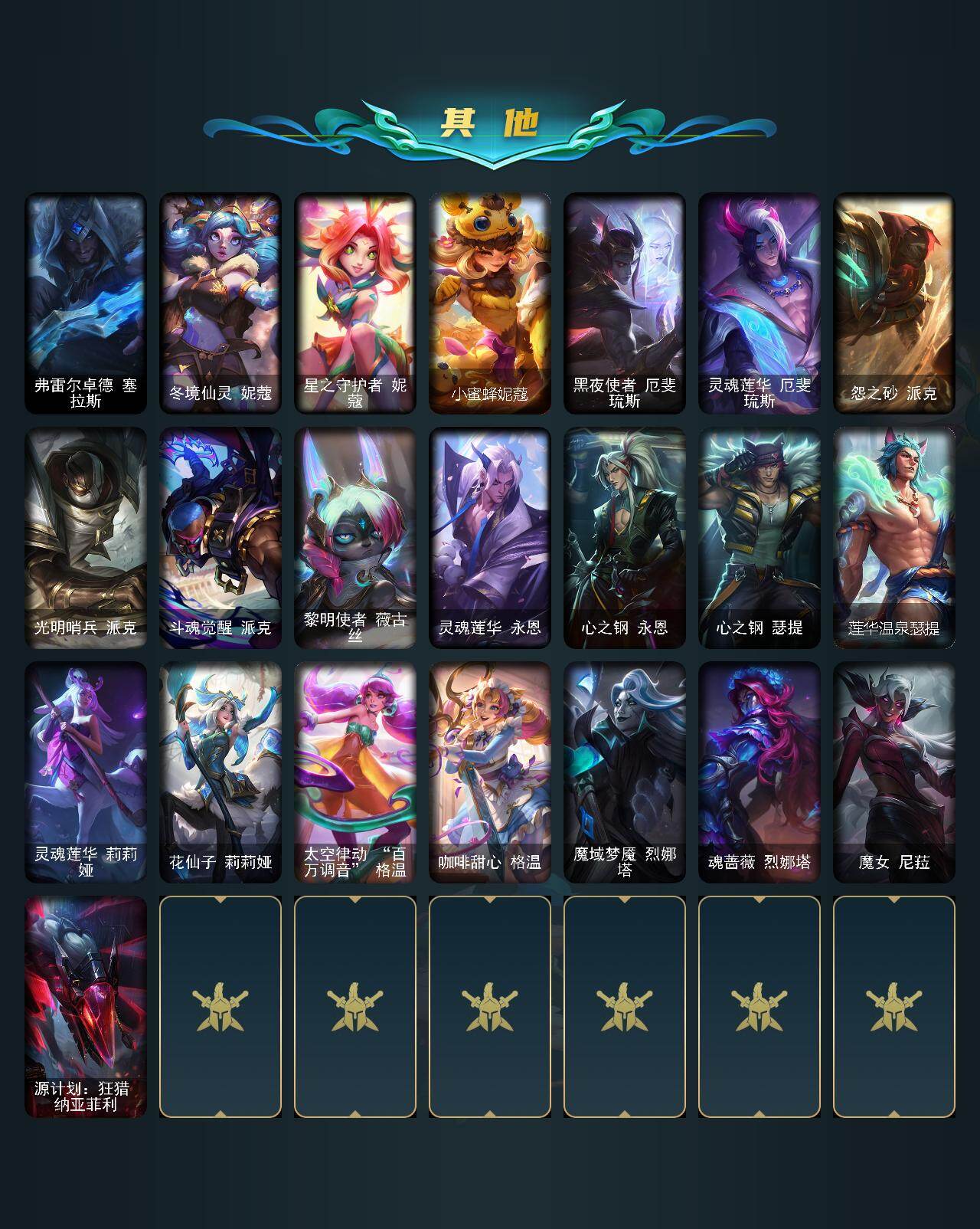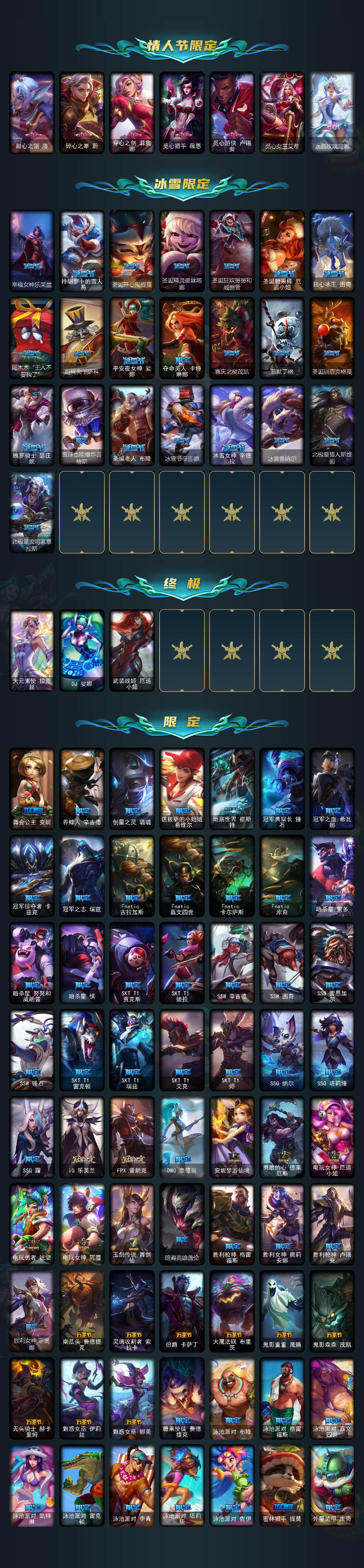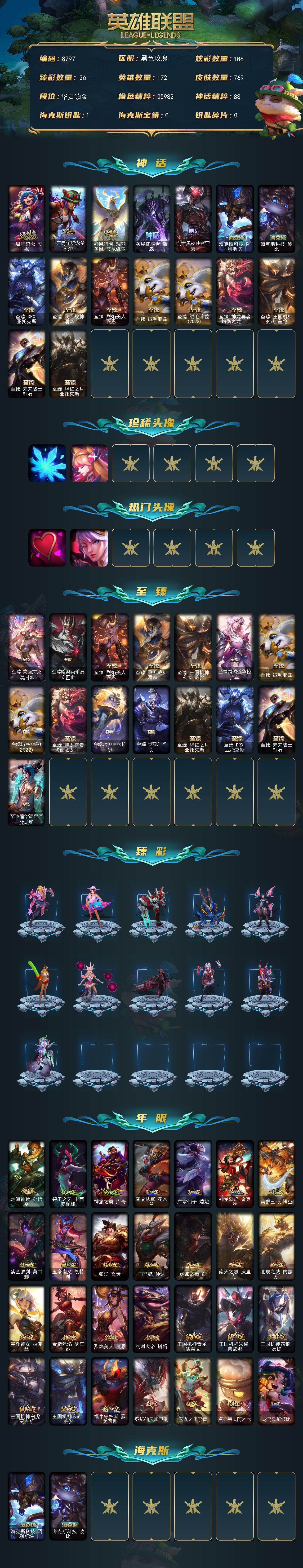 单双铂金段位-172英雄-769皮肤-186炫彩-3终极-22神话-145限定-92传说-134史诗