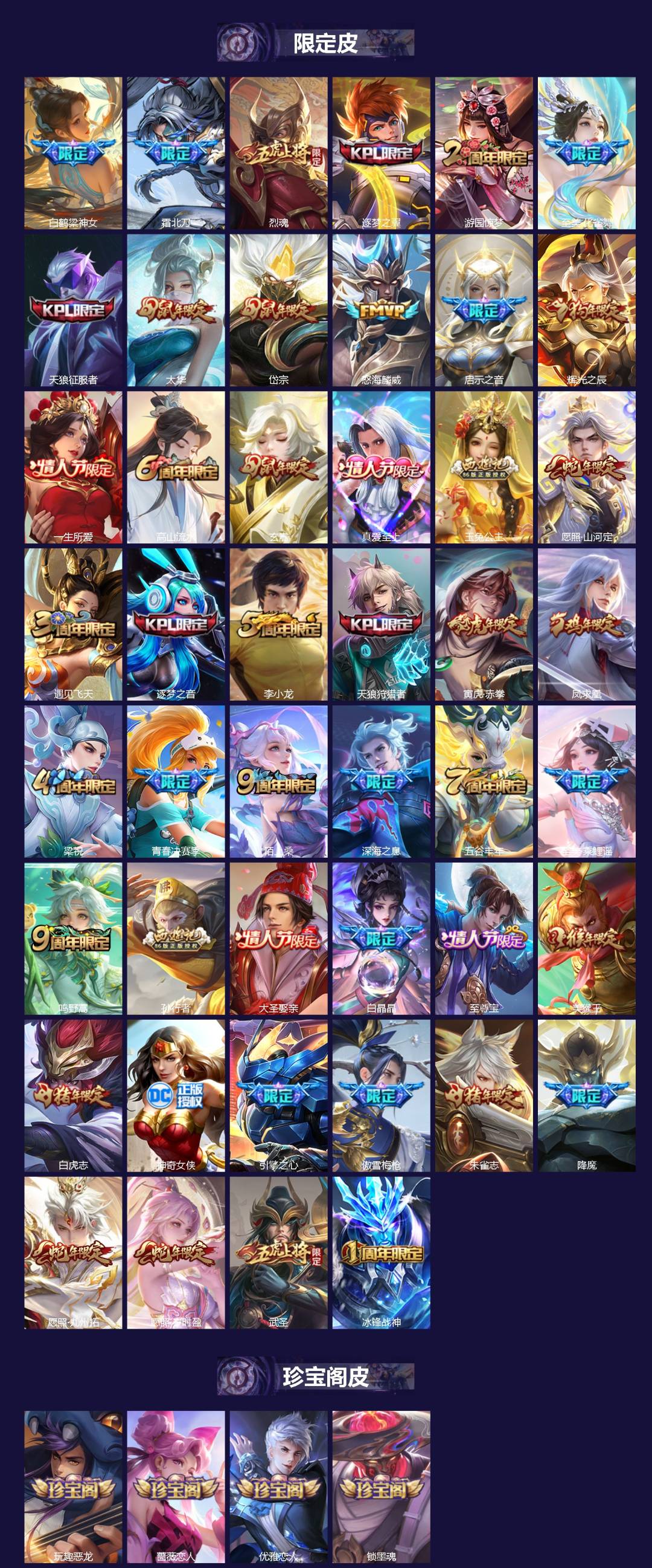 【英雄全皮】露娜全皮,司空震全皮,典韦全皮,蒙恬全皮,敖隐全皮,空空儿全皮,孙权全皮,蚩奼全皮,姜子牙全皮,苍全皮,狂铁全皮,鬼谷子全皮,戈娅全皮,刘邦全皮,钟馗全皮,亚连全皮,夏洛特全皮,影全皮,大禹全皮