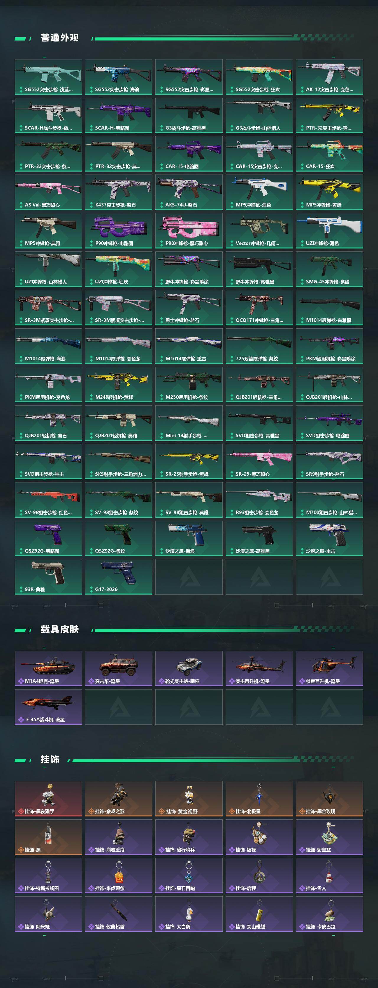 【近战皮肤】:近战-北极星,近战-怜悯,近战-处刑者2级,近战-黑鹰