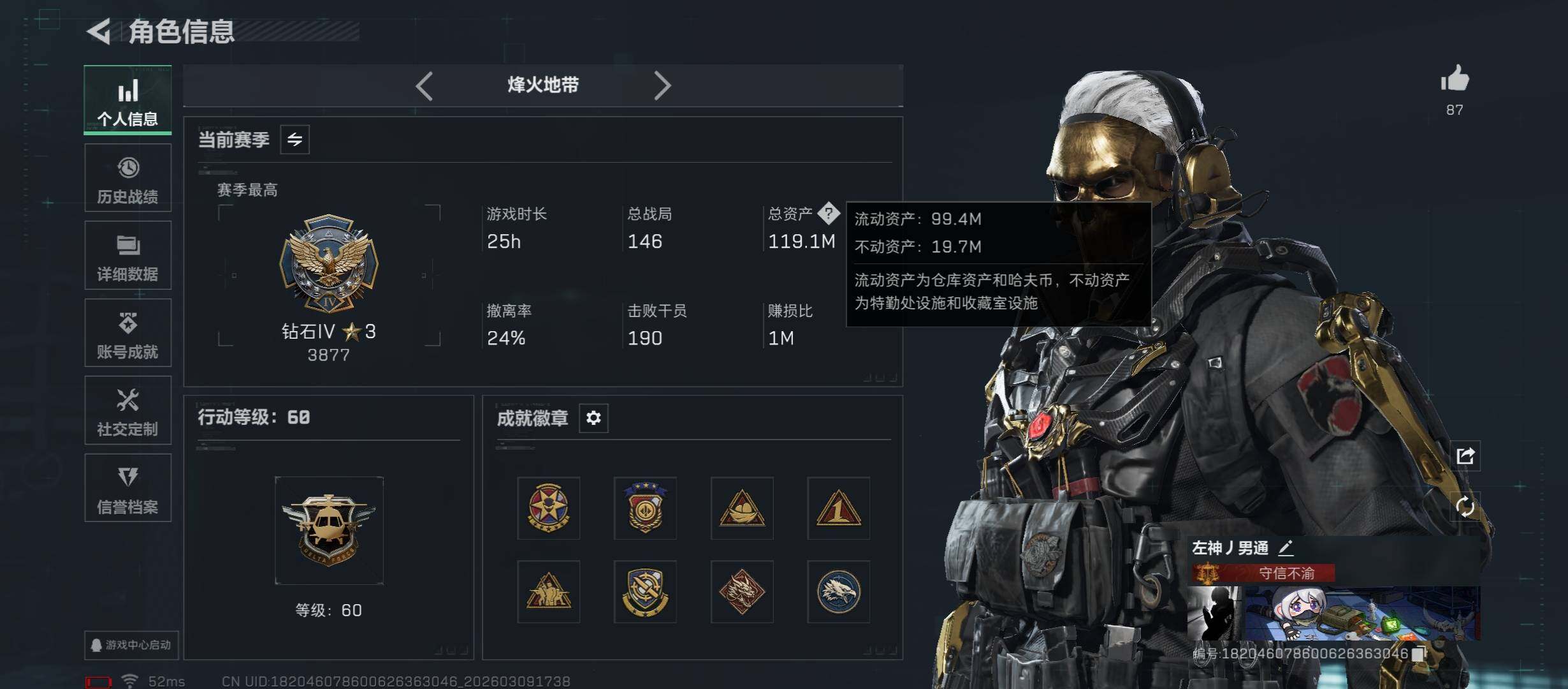 【赛季热门组合-双红+三刀+单典藏皮肤】【无二次】YXz8974-特勤处:仓库8级/靶场6级/训练中心6级-119m总资产-752w哈伏币-60烽火等级-钻石-1战场等级-无军衔