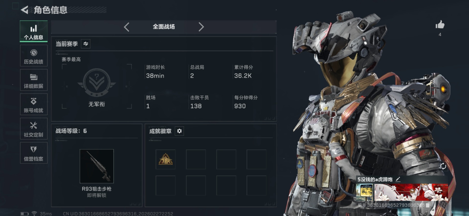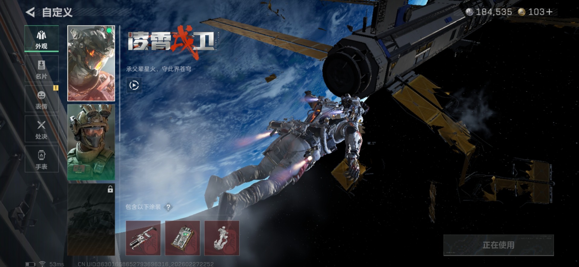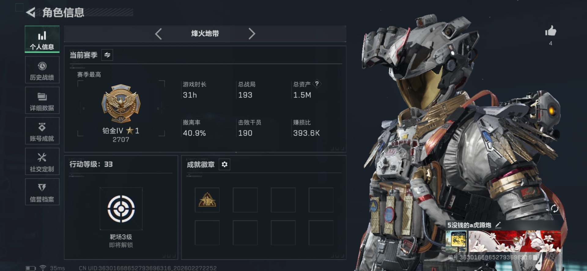 总资产:1.5M 1干员外观 1近战传说 16传说枪械 哈夫币:184.535