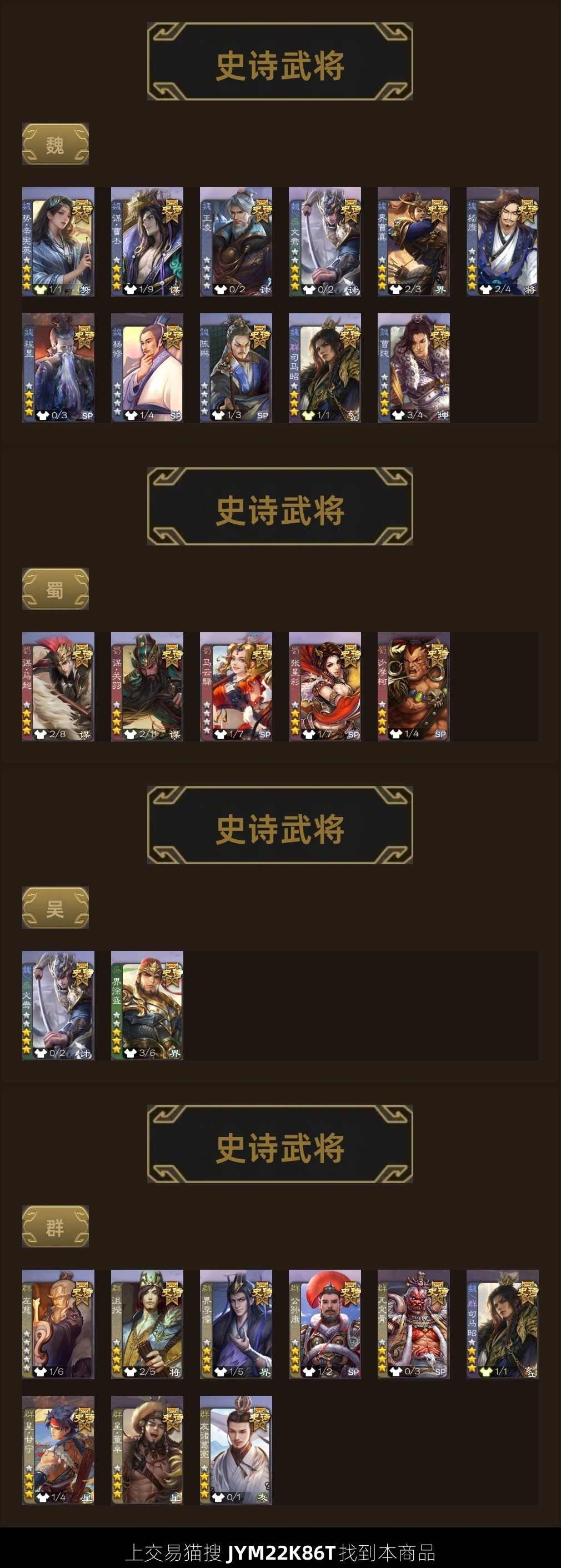 史诗武将数量: