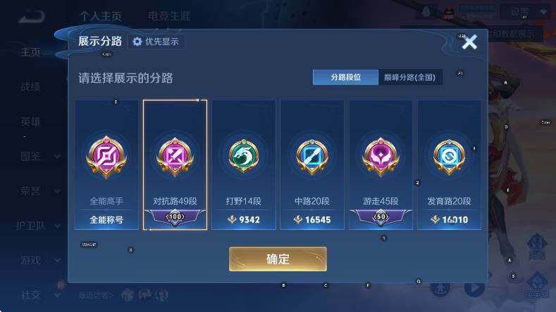 贵族8-对抗路49段、游走45段-小国廉颇-金标刘禅、蒙恬、张飞、项羽、夏侯惇-贵族积分99684-321皮-2典藏-16传说-3全皮英雄-7改名卡 安卓手Q297区