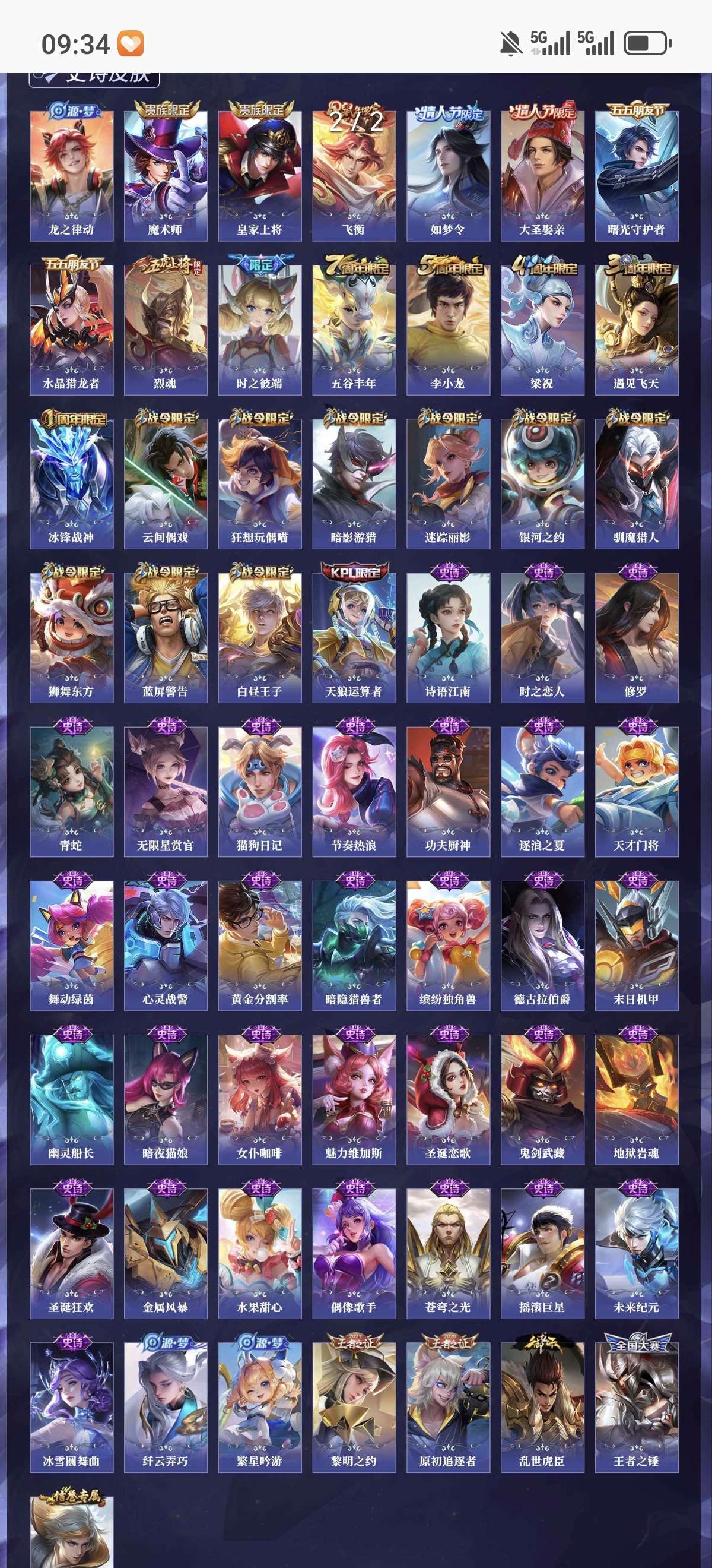 贵族8 荣耀典藏2 珍品传说2 星元皮肤1 传说皮肤11