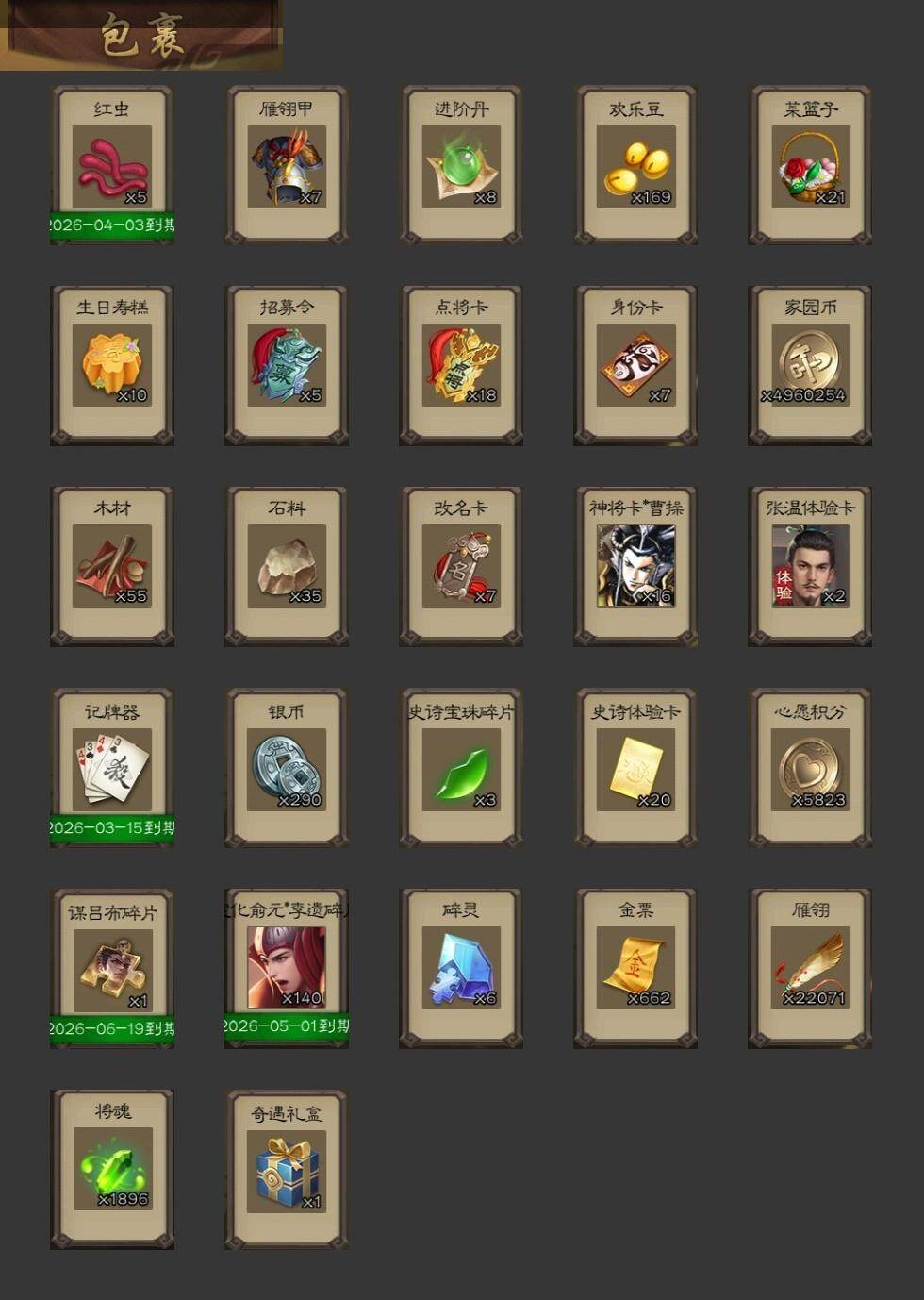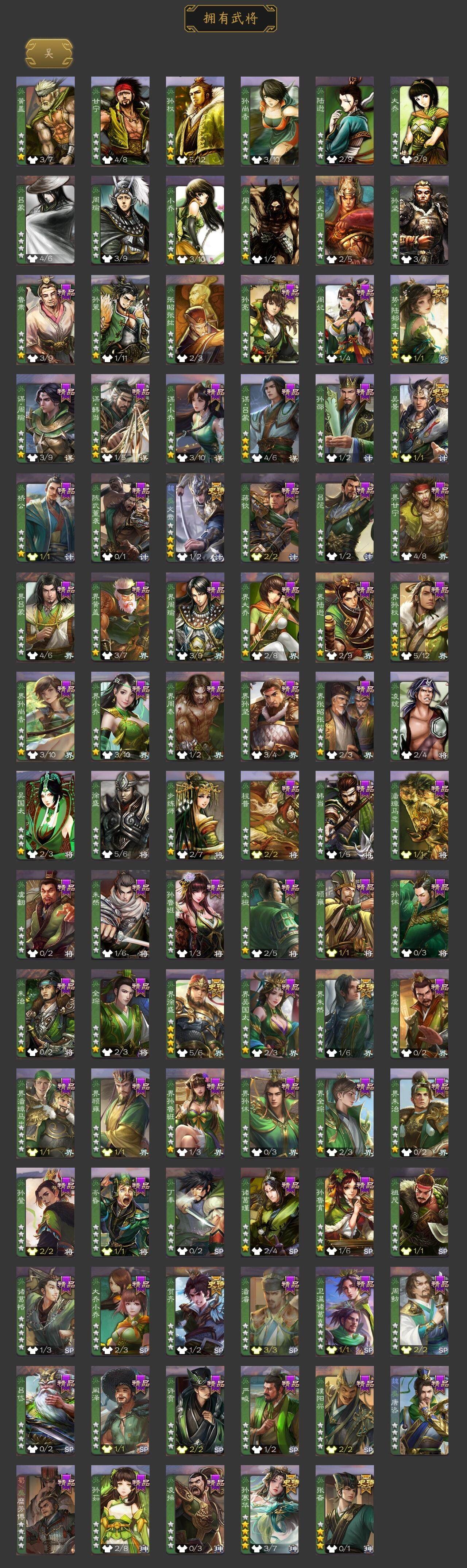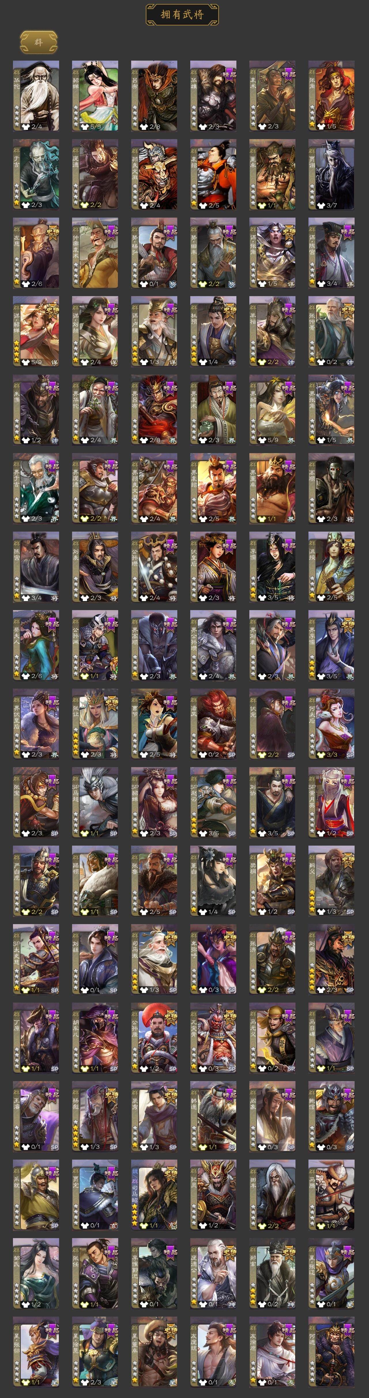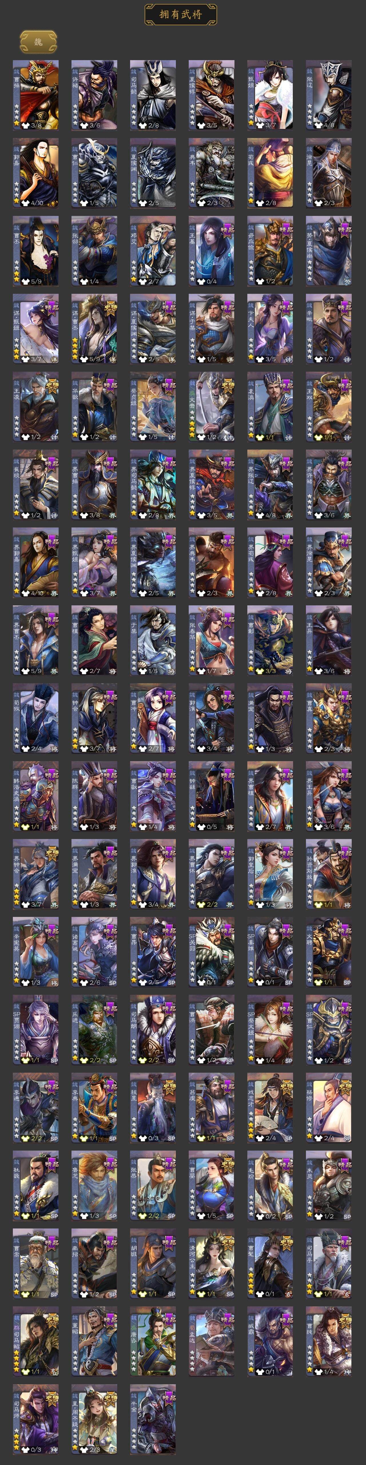 神吕布,神赵云,神陆逊,神刘备,神张辽,神郭嘉,曹髦,星周不疑,杨修,王凌,司马师,界钟会,曹婴,曹纯,戏志才,谋曹丕,清河公主,程昱,关索,谋诸葛亮,马云騄,谋赵云,