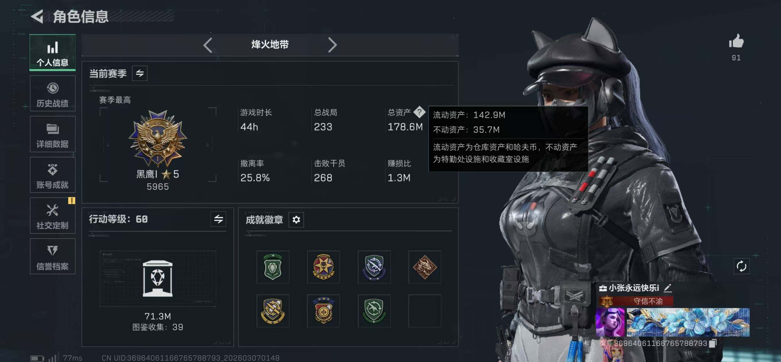 178m总资产-198k哈伏币-60烽火等级-黑鹰-20战场等级-上等兵 Y