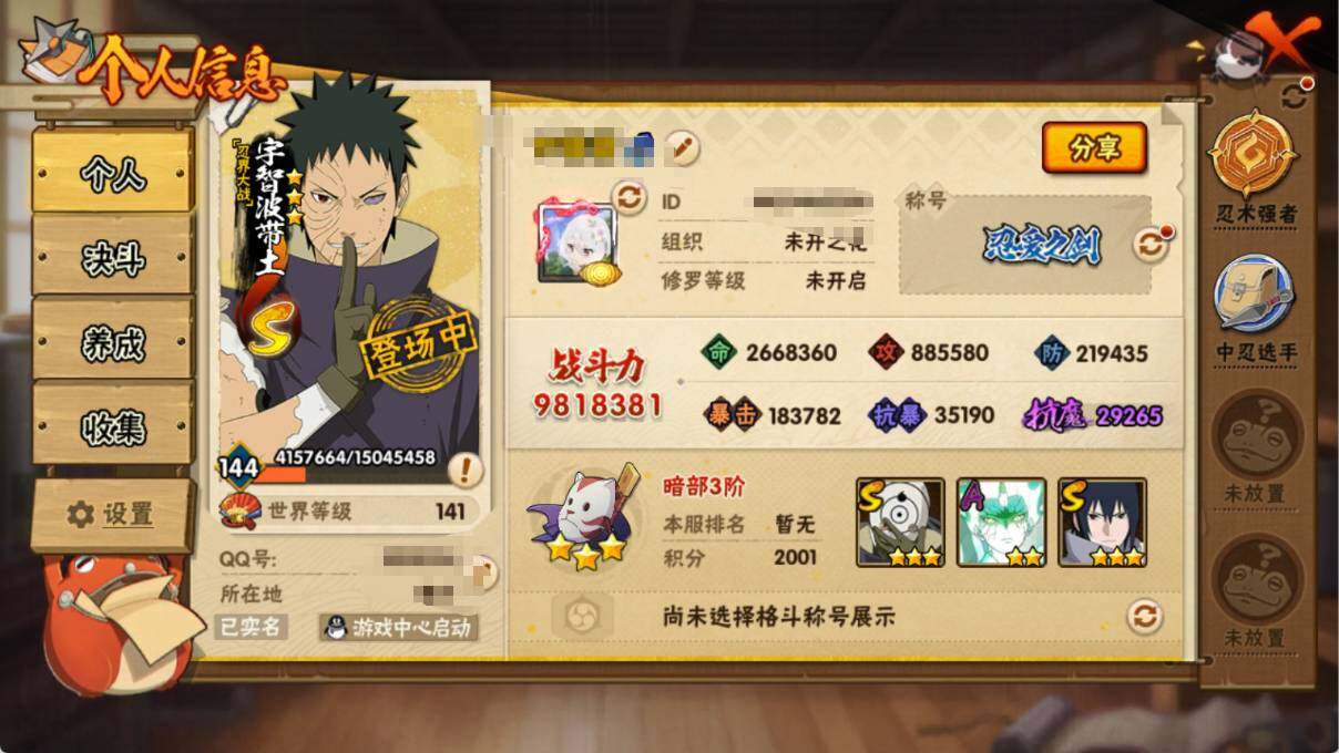 【HYYH1265】V10/战力981W/S忍18/A忍30/忍界大战-日向宁次/2星大野木「侠隐江湖」/纲手/五代目雷影-达鲁伊/死司凭血-飞段/宇智波鼬/永恒万花筒-宇智波佐助/大筒木金式/5星猿飞阿斯玛/青年-长门/2星小南「神驹佑将」/忍界大战-宇智波带土/蝎/天道-佩恩/3星漩涡鸣人·宇智波佐助/五代目水影-照美冥/波风水门/九喇嘛连结-漩涡鸣人/忍界大战-秋道丁次/2星角都「秽土转生」/5星迈特凯/桃式显现-漩涡博人/秽土转生-千手扉间/木叶创立-千手柱间/3星我爱罗「疾风传」/忍者