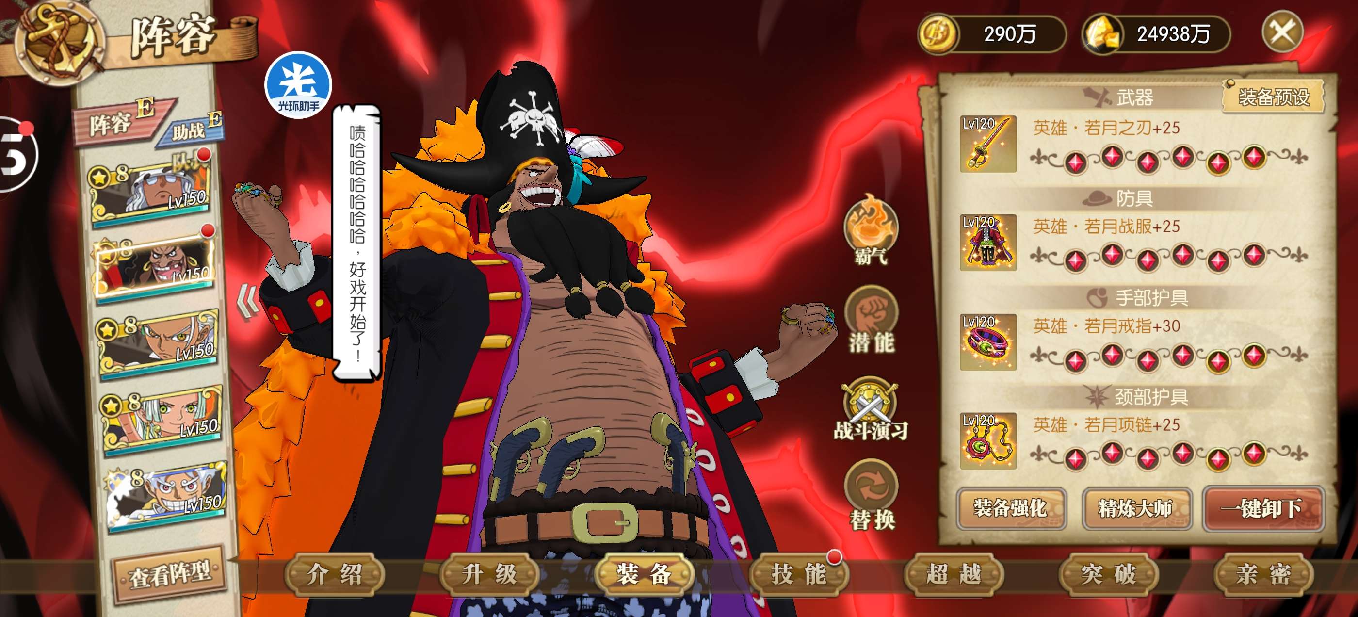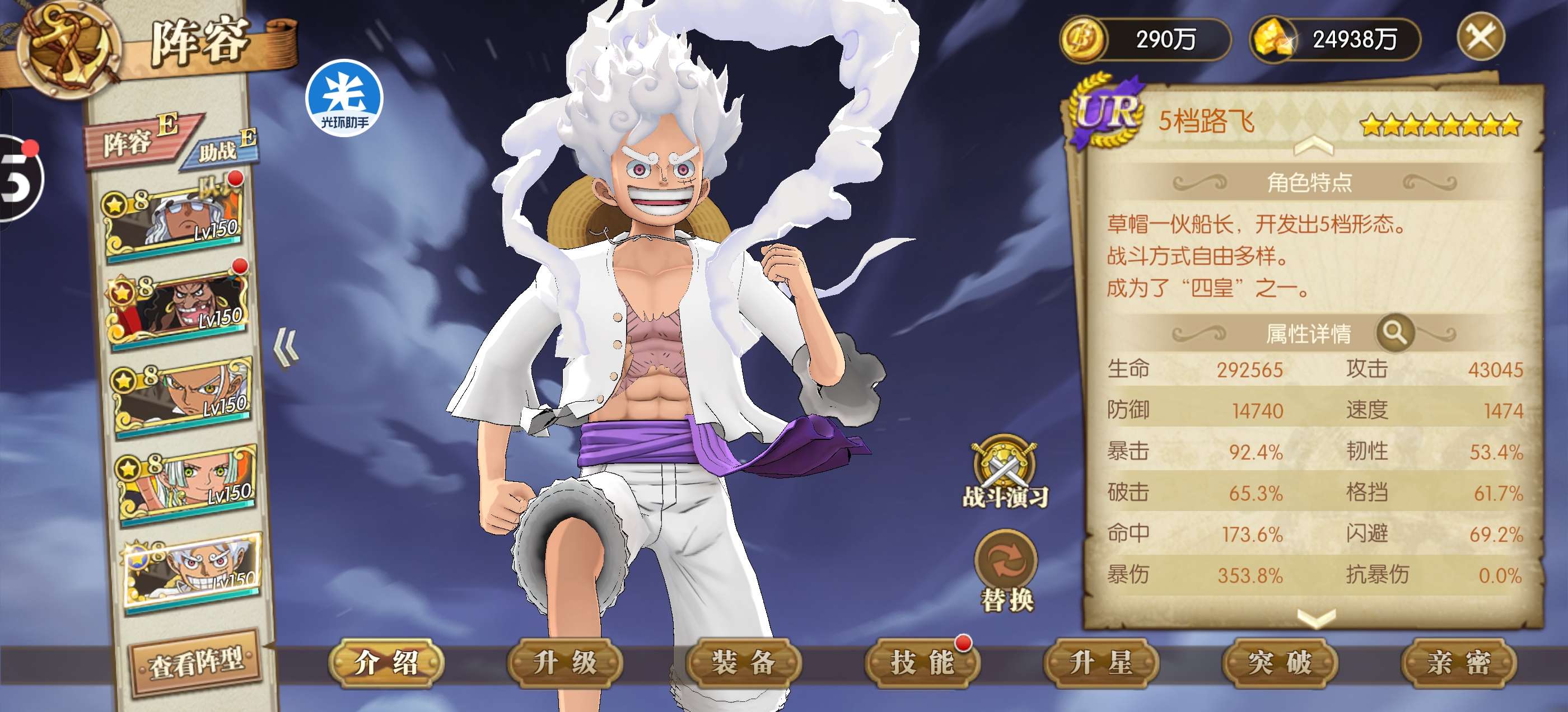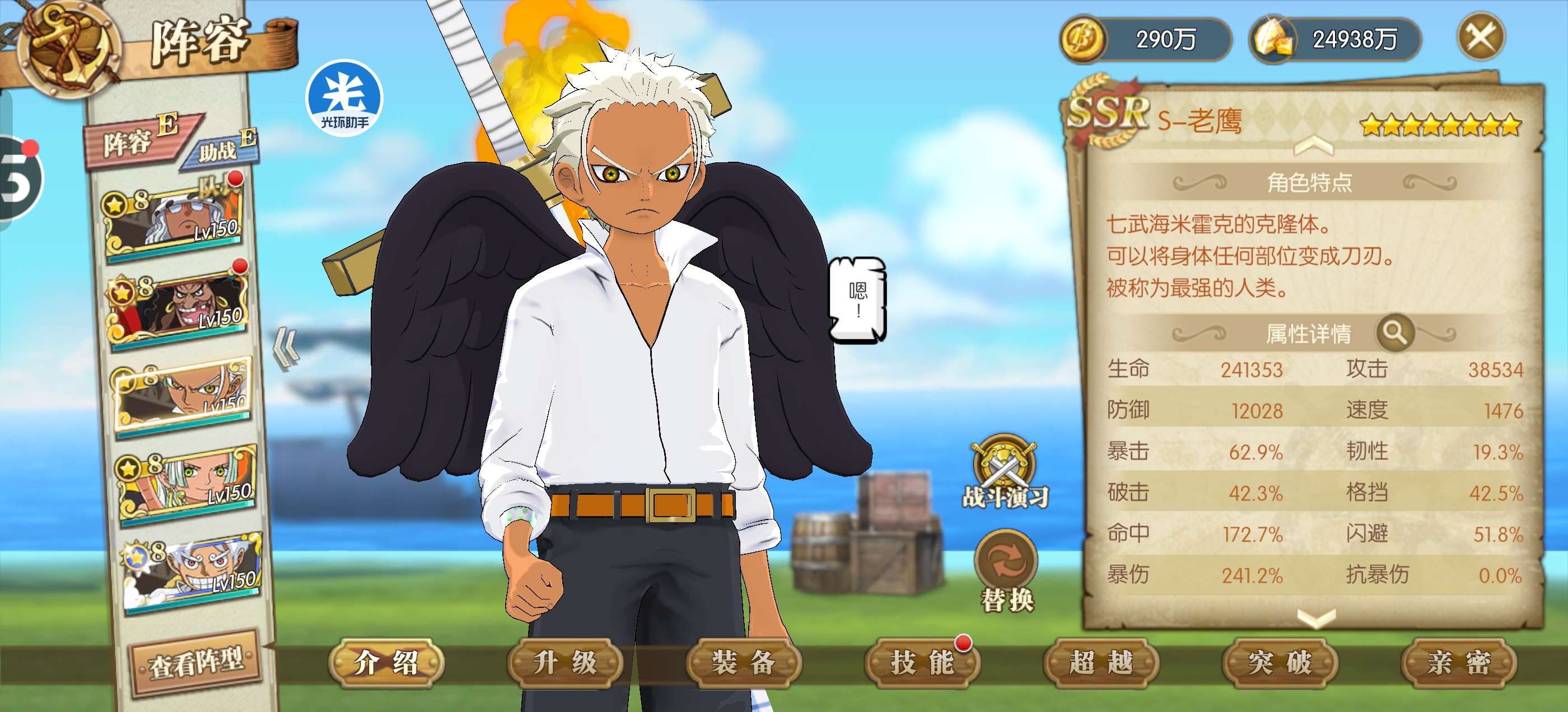 双六级阵 时装币3800 UR凯多全助战皮肤 小鹰眼1476 黑胡子1500 路飞1474天梯前20