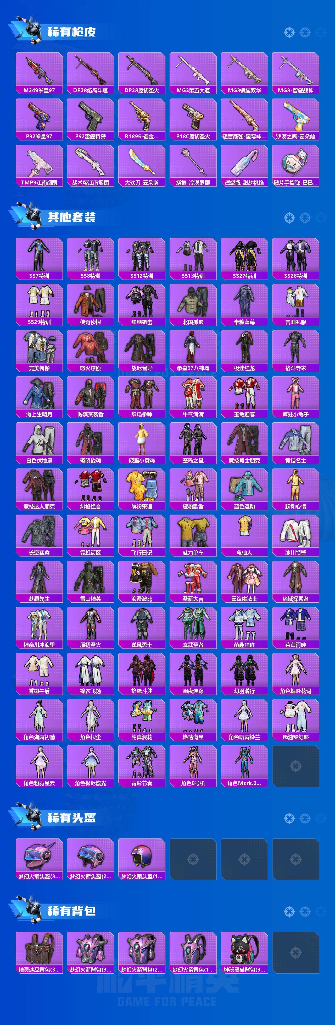 苹果 手Q-1神装-15粉装-16特效枪-6载具-11粉色飞行器-73650热力值-7王牌印记-138套装-206枪皮