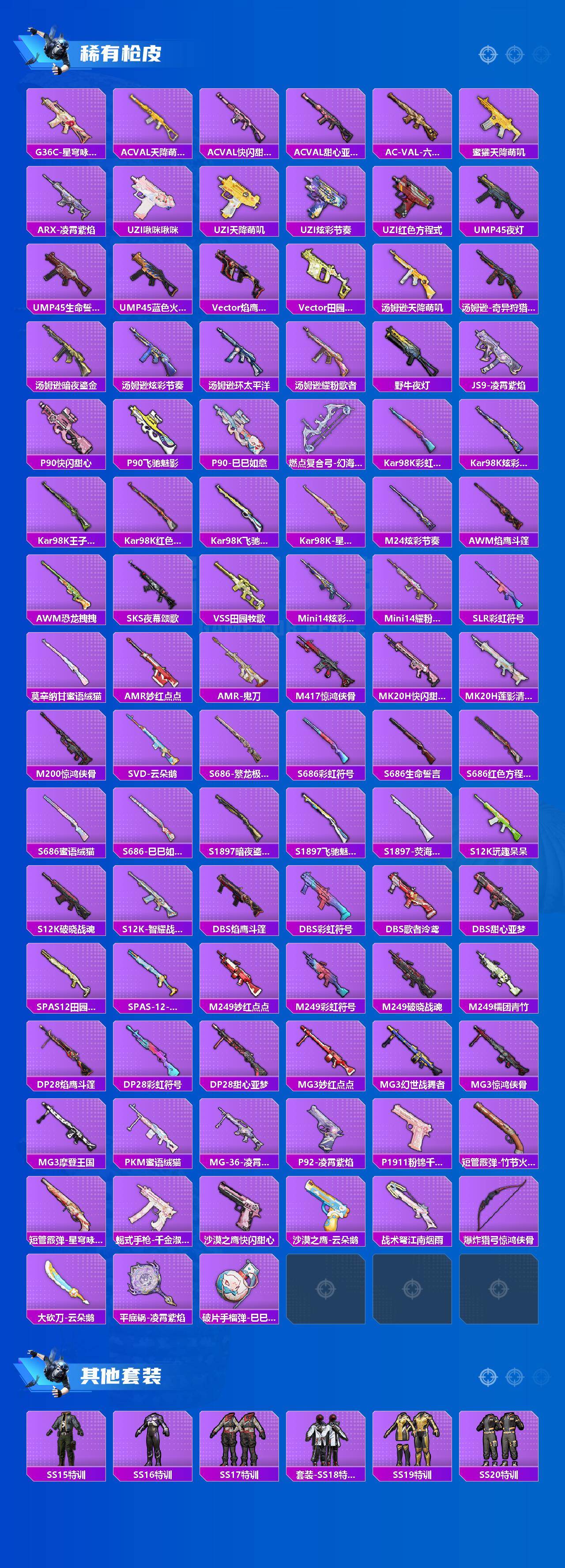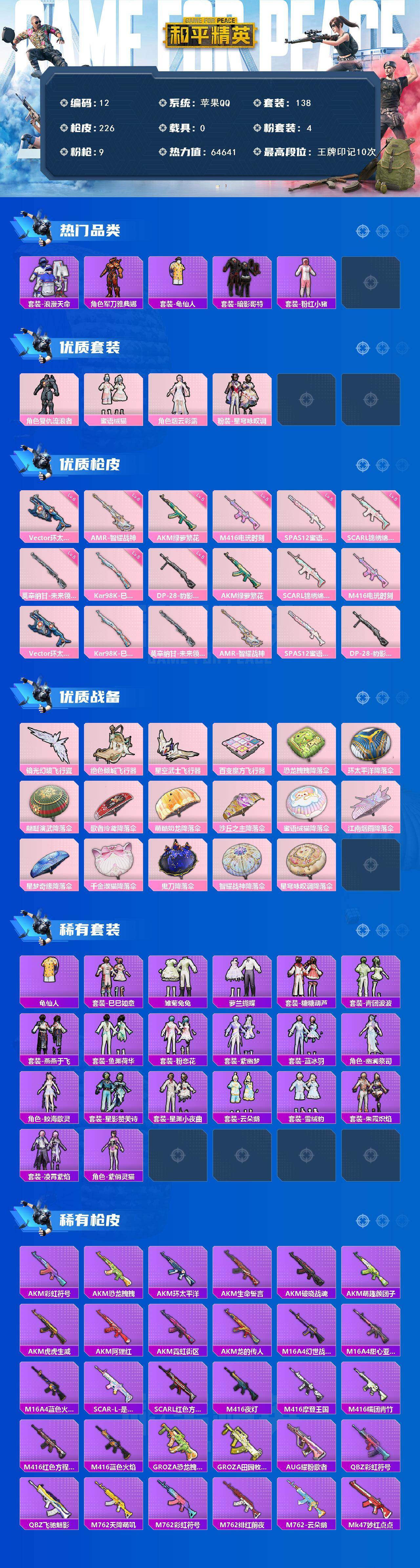 苹果 手Q-4粉装-9特效枪-0载具-5粉色飞行器-64641热力值-10王牌印记-138套装-226枪皮