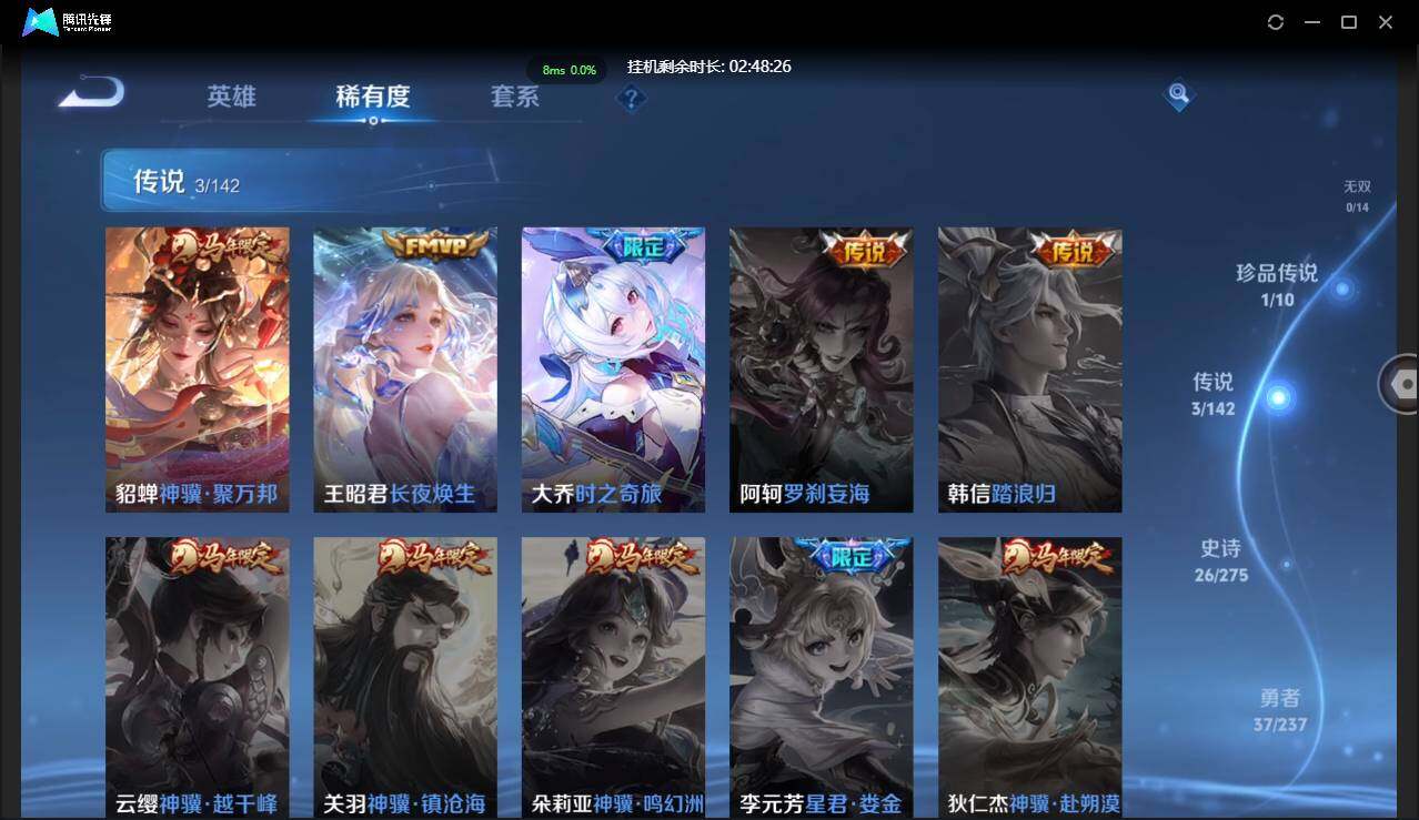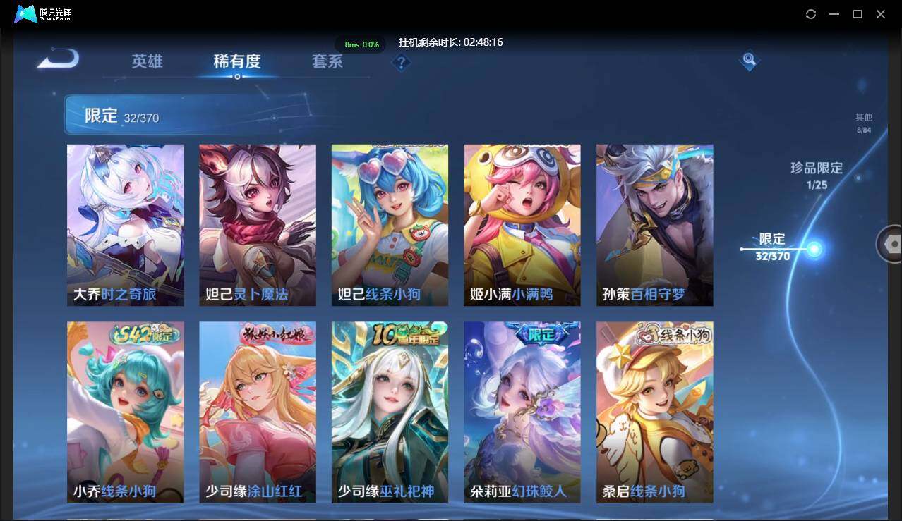 【W5982】【亮点:782场次妹子号】安卓Q-可二次-贵6-84英雄-75皮肤-1珍品传说-3传说-32限定-8按键-贵族积分15697-营地ID:1571611084(热门:瑶大耳狗之梦-貂蝉神骥聚万邦,王昭君长夜焕生,大乔时之奇旅-朵莉亚幻珠鲛人)